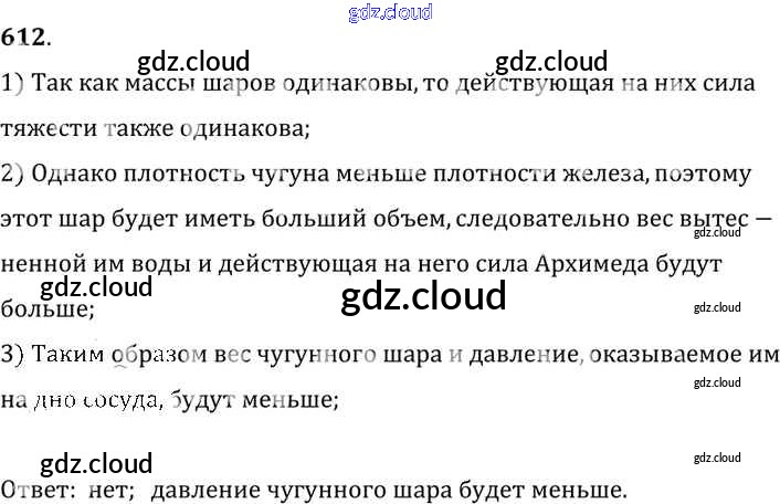 Ответ на задание 612 Сборник задач Физика за 7, 8, 9 (седьмой, восьмой, девятый) класс Лукашик, Иванова 2011