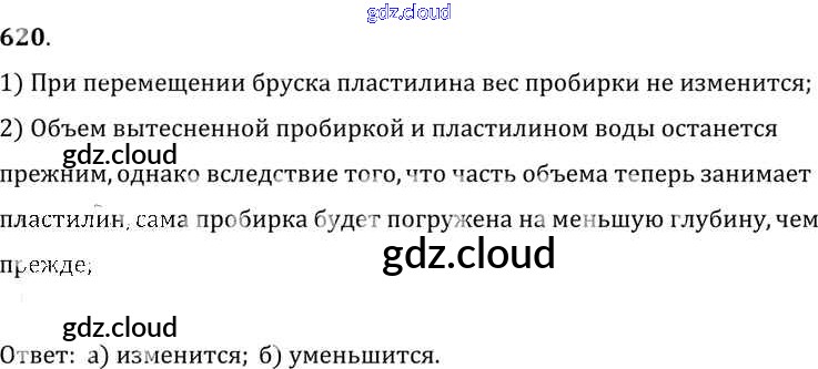 Ответ на задание 620 Сборник задач Физика за 7, 8, 9 (седьмой, восьмой, девятый) класс Лукашик, Иванова 2011