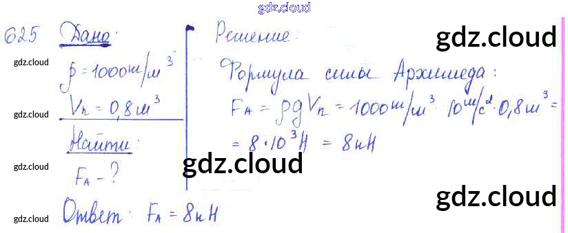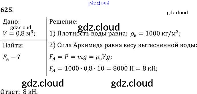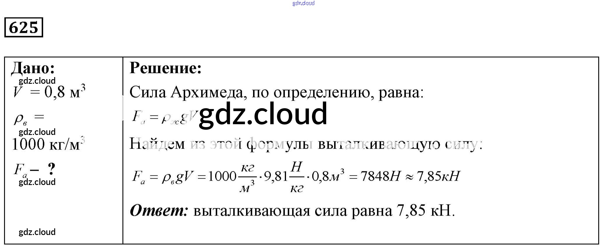 Ответ на задание 625 Сборник задач Физика за 7, 8, 9 (седьмой, восьмой, девятый) класс Лукашик, Иванова 2011
