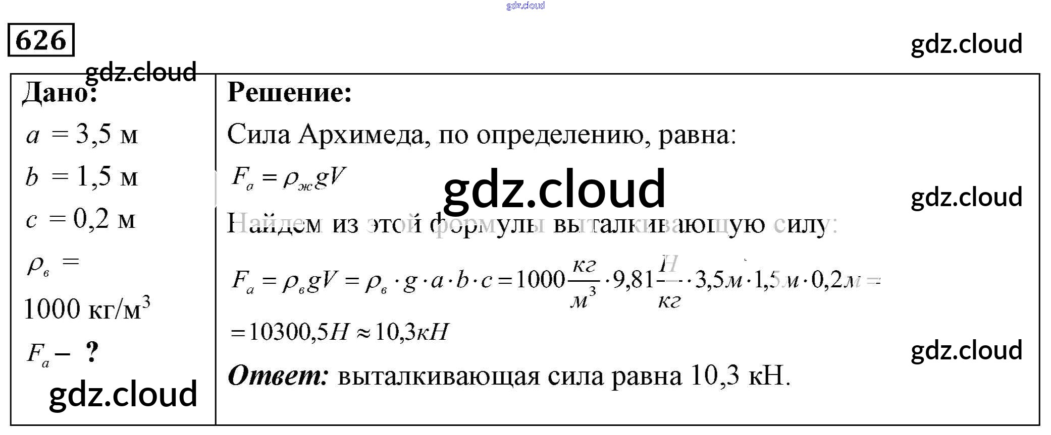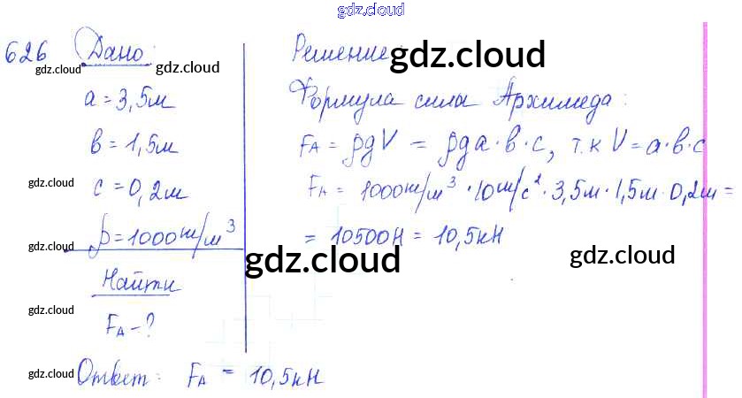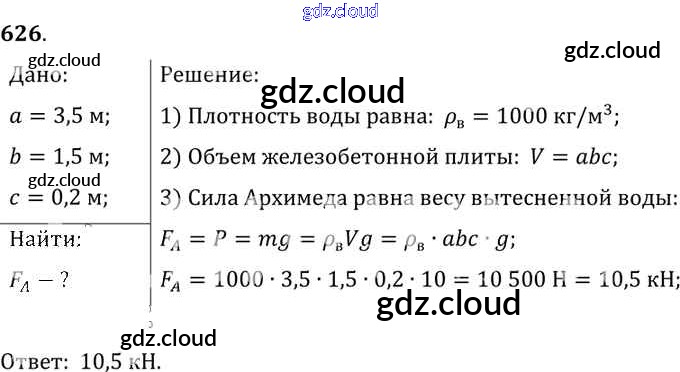Ответ на задание 626 Сборник задач Физика за 7, 8, 9 (седьмой, восьмой, девятый) класс Лукашик, Иванова 2011