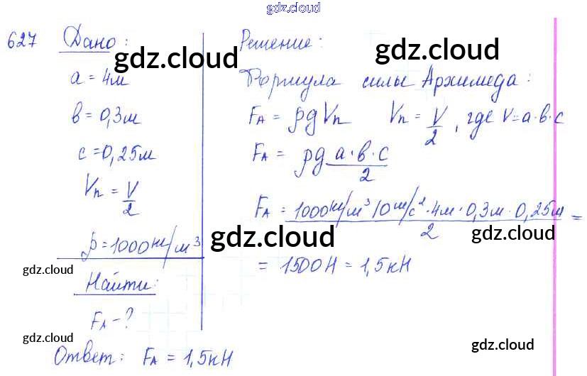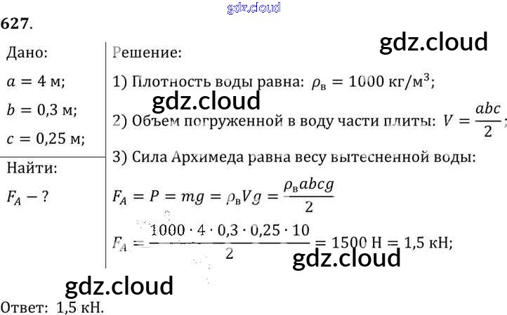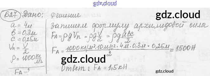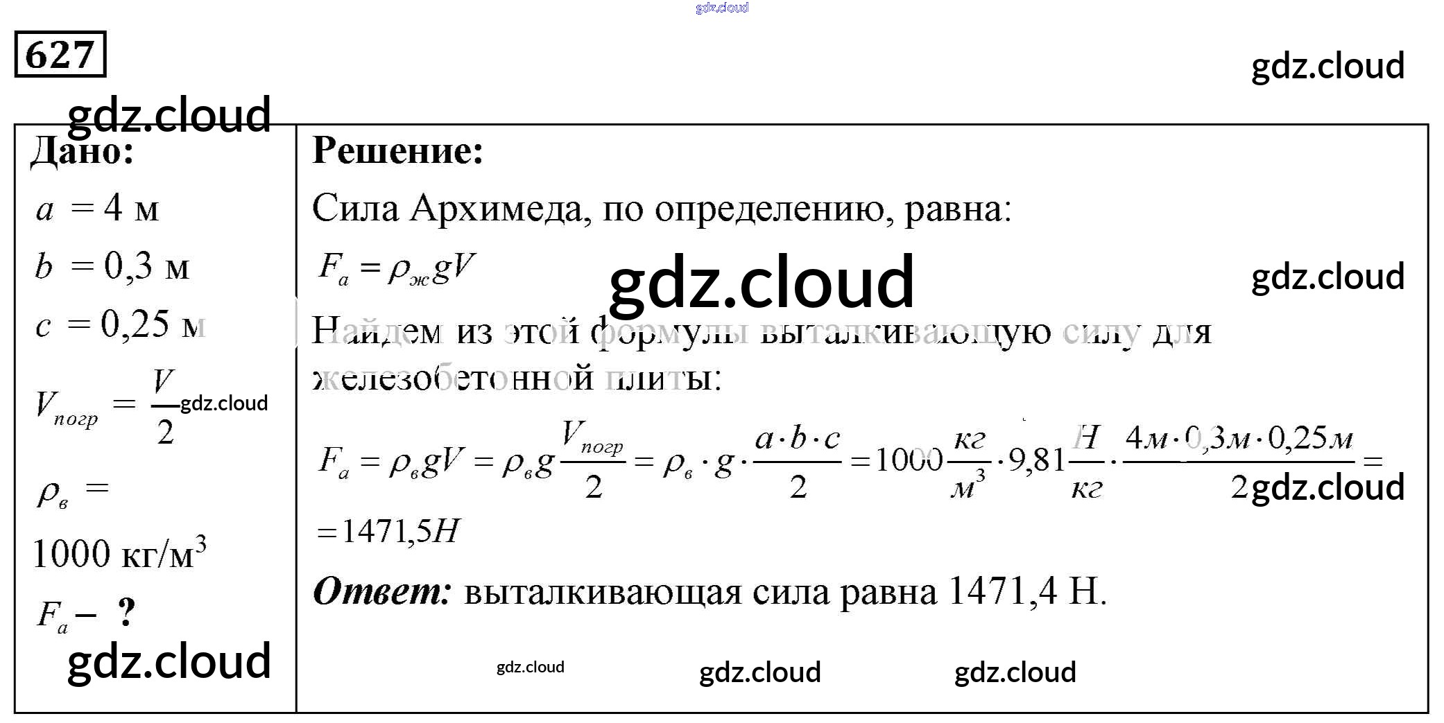 Ответ на задание 627 Сборник задач Физика за 7, 8, 9 (седьмой, восьмой, девятый) класс Лукашик, Иванова 2011