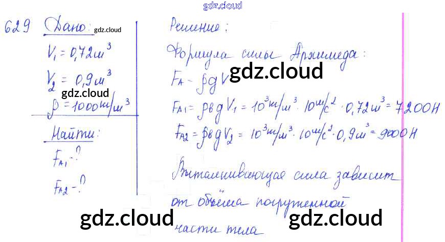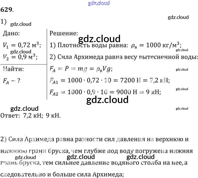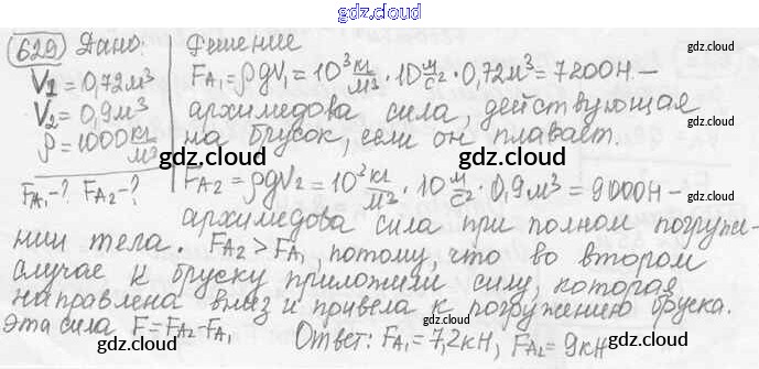 Ответ на задание 629 Сборник задач Физика за 7, 8, 9 (седьмой, восьмой, девятый) класс Лукашик, Иванова 2011