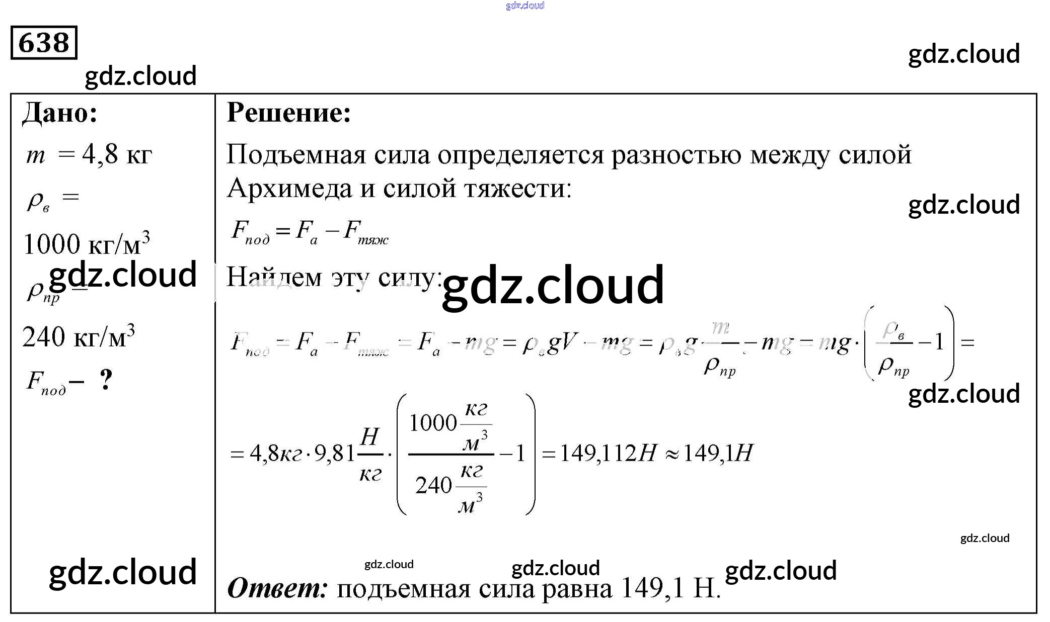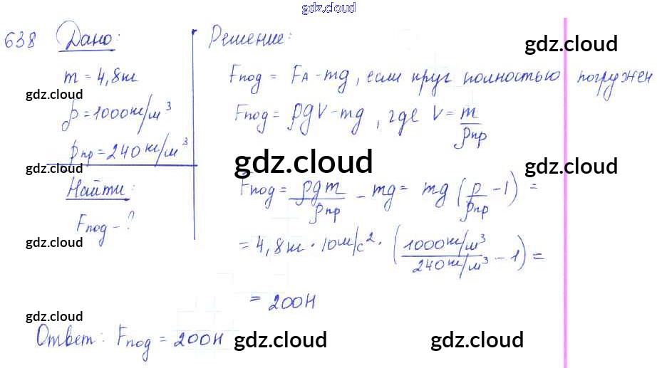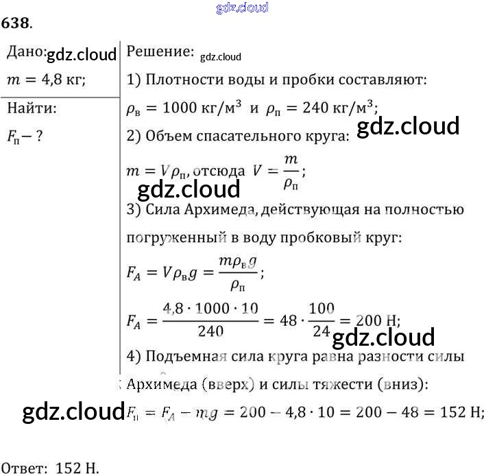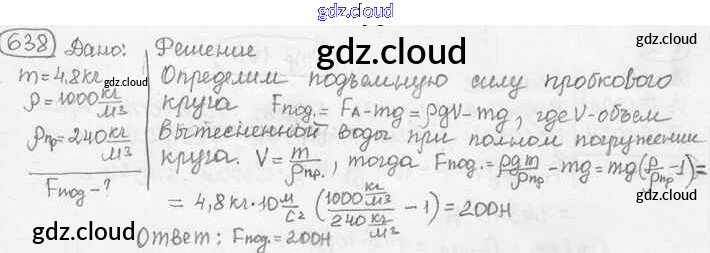 Ответ на задание 638 Сборник задач Физика за 7, 8, 9 (седьмой, восьмой, девятый) класс Лукашик, Иванова 2011