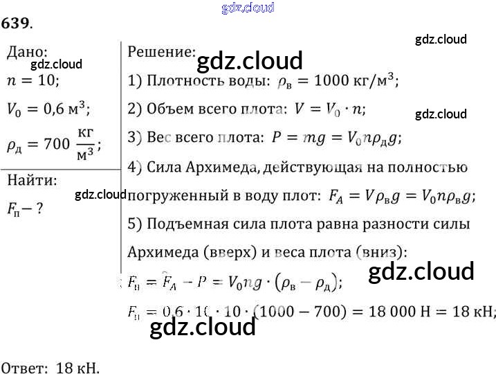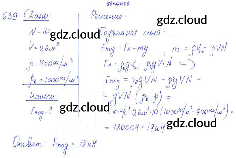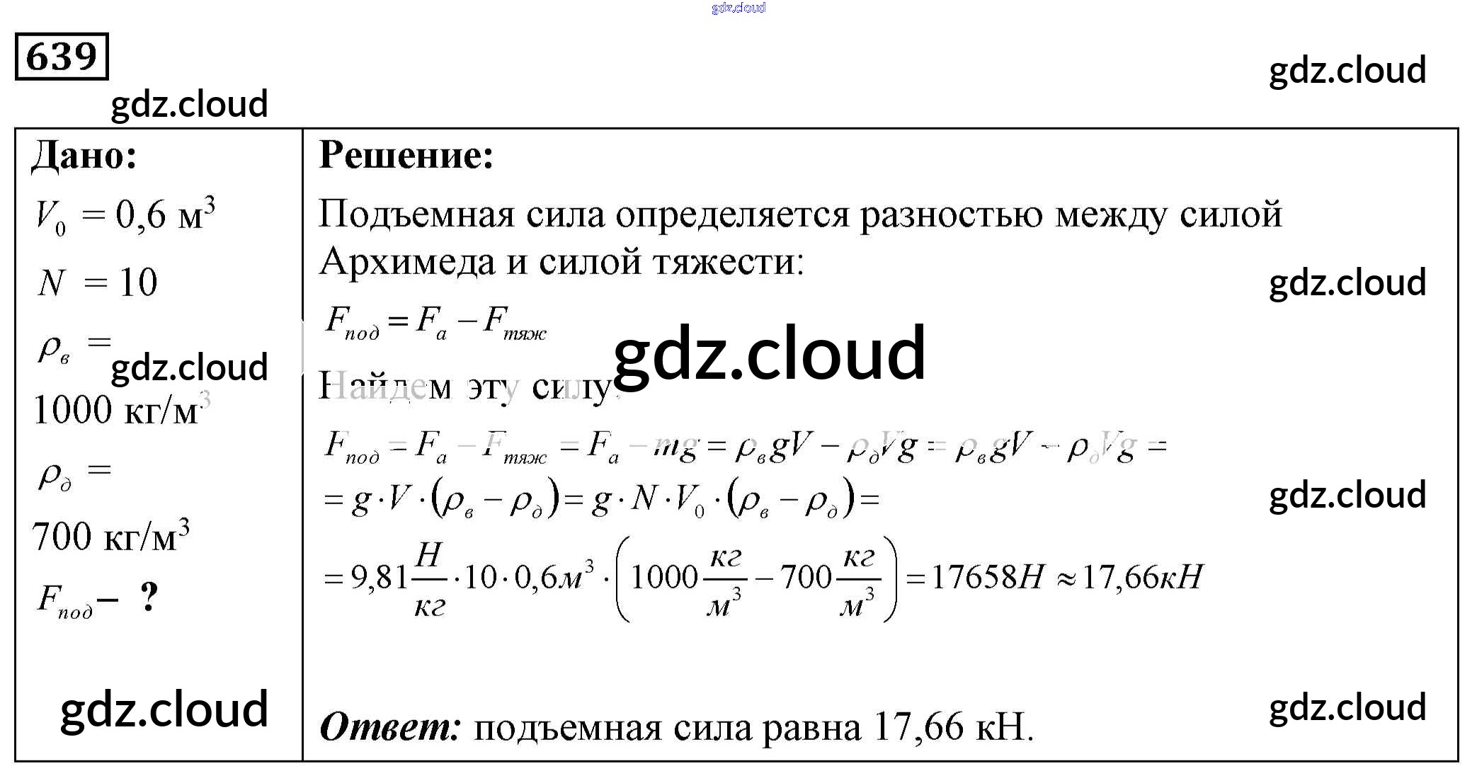Ответ на задание 639 Сборник задач Физика за 7, 8, 9 (седьмой, восьмой, девятый) класс Лукашик, Иванова 2011