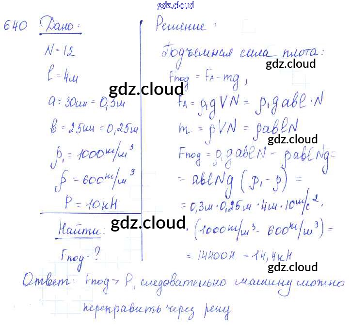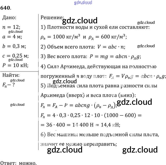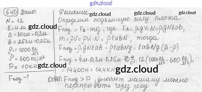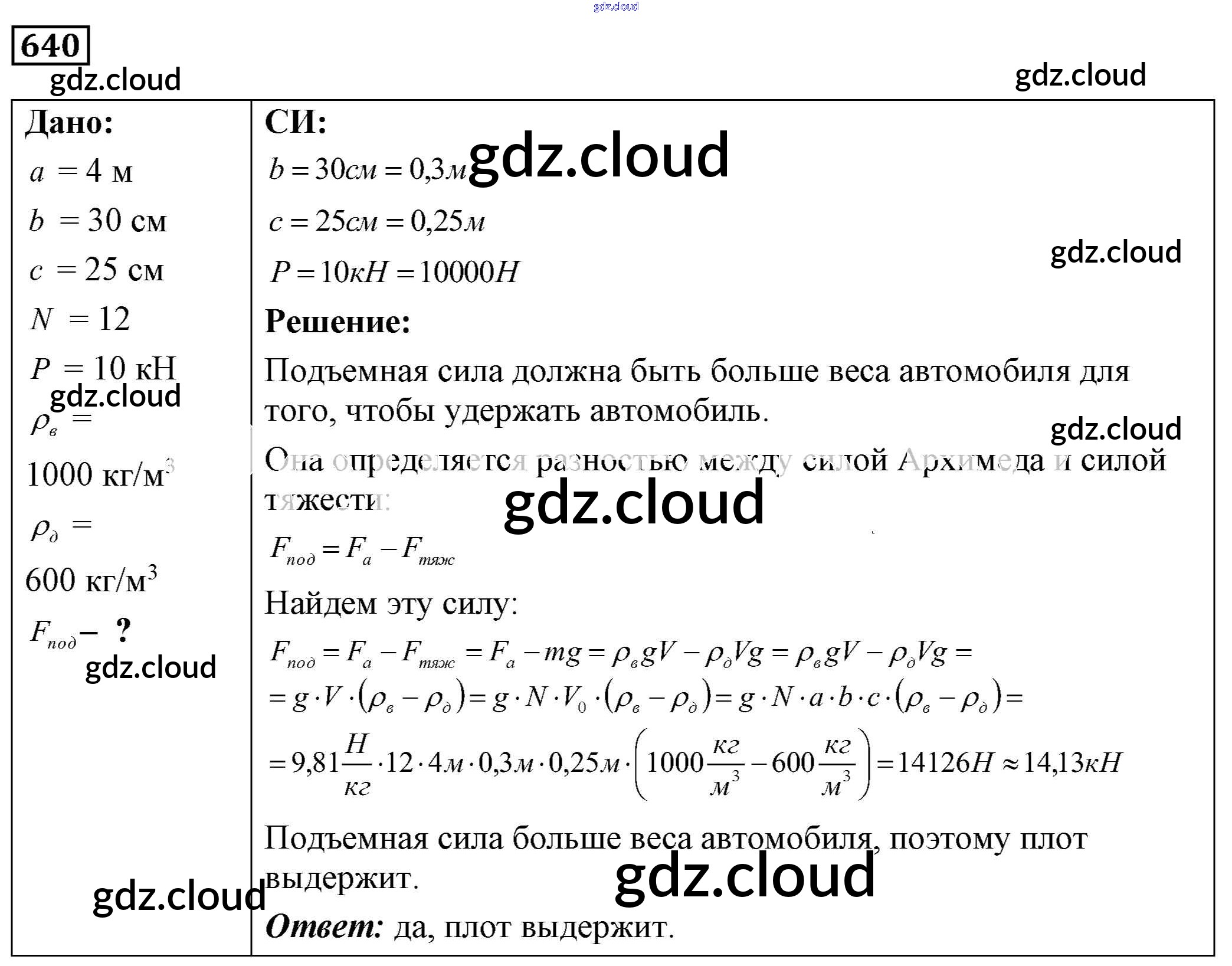 Ответ на задание 640 Сборник задач Физика за 7, 8, 9 (седьмой, восьмой, девятый) класс Лукашик, Иванова 2011