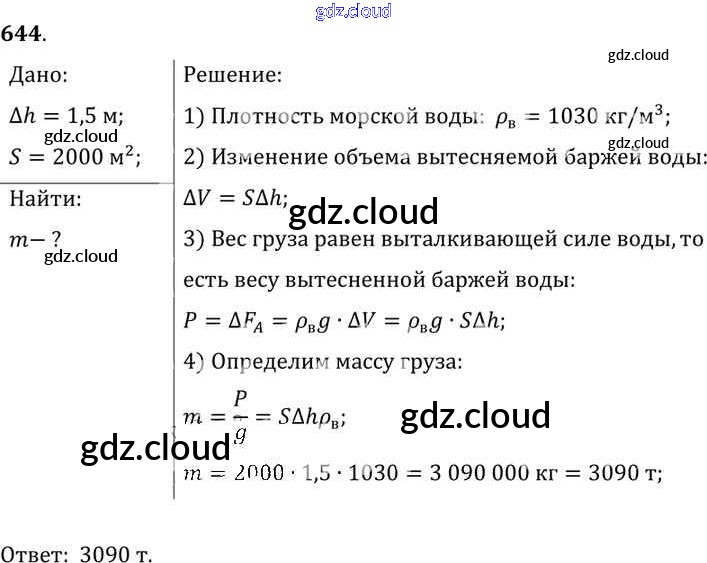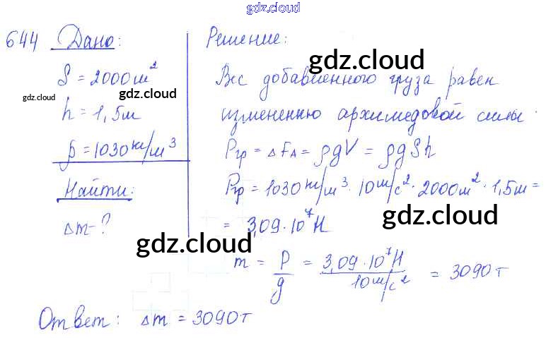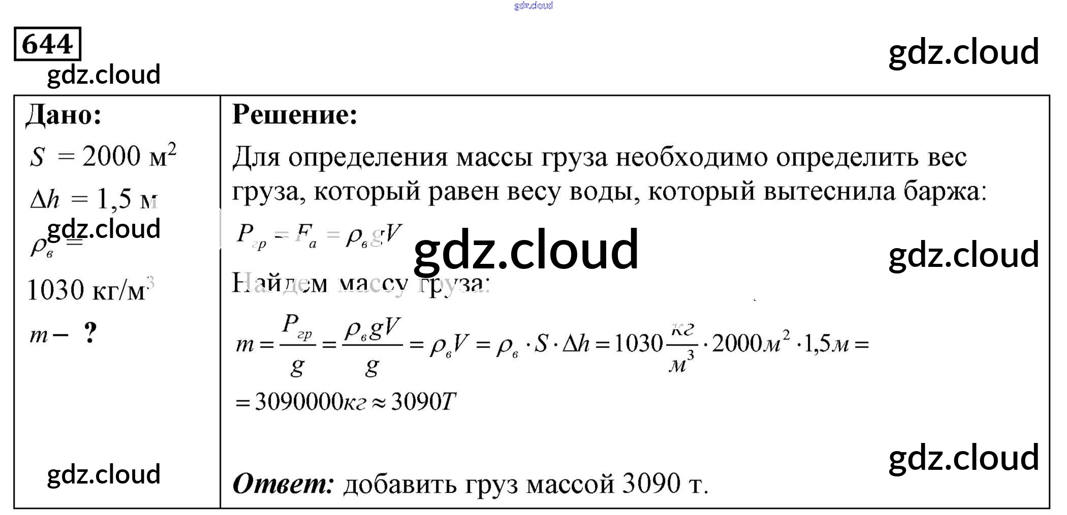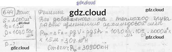 Ответ на задание 644 Сборник задач Физика за 7, 8, 9 (седьмой, восьмой, девятый) класс Лукашик, Иванова 2011
