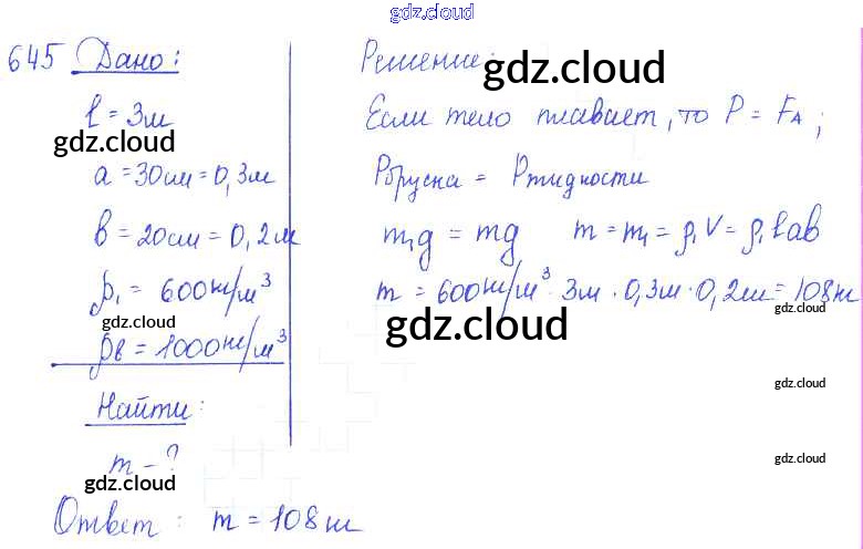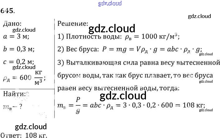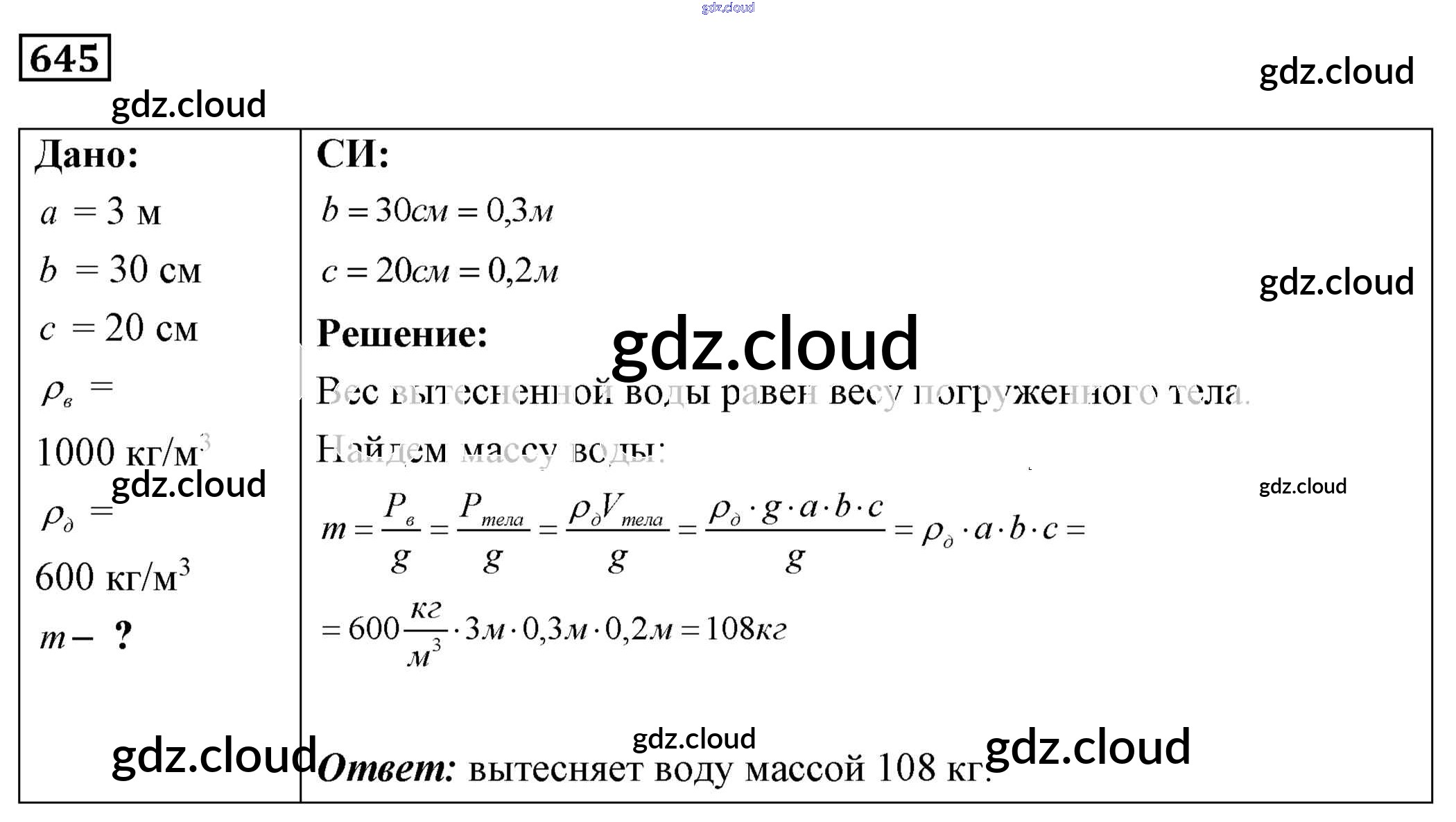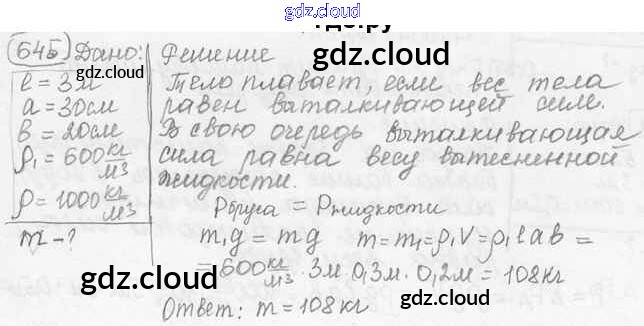 Ответ на задание 645 Сборник задач Физика за 7, 8, 9 (седьмой, восьмой, девятый) класс Лукашик, Иванова 2011