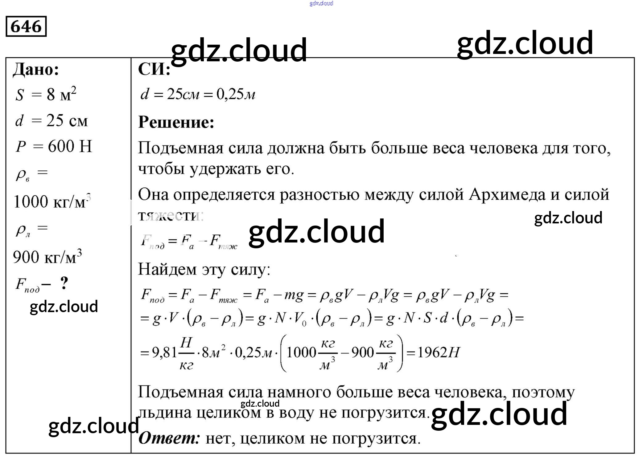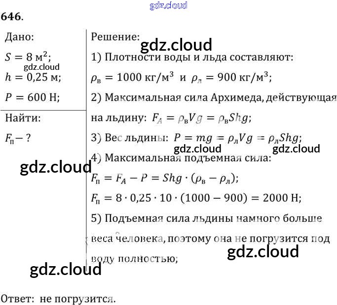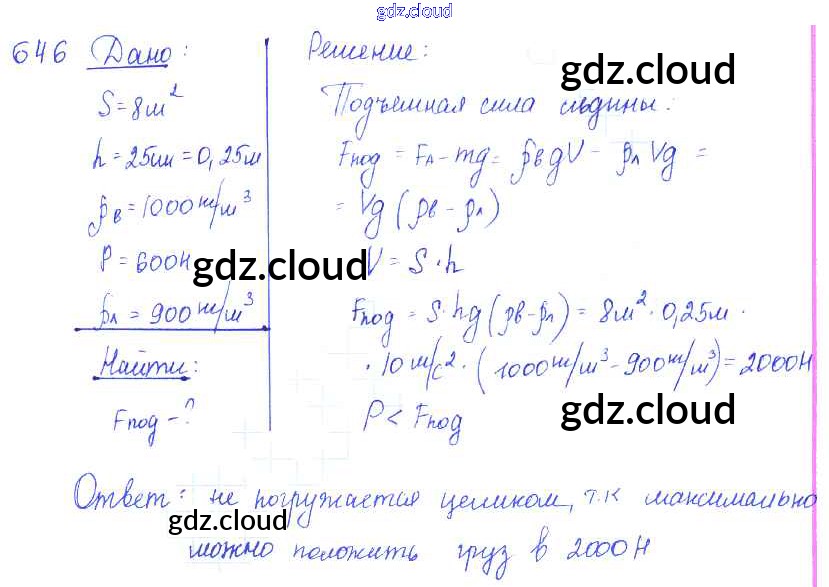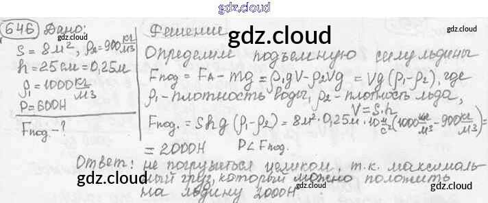 Ответ на задание 646 Сборник задач Физика за 7, 8, 9 (седьмой, восьмой, девятый) класс Лукашик, Иванова 2011