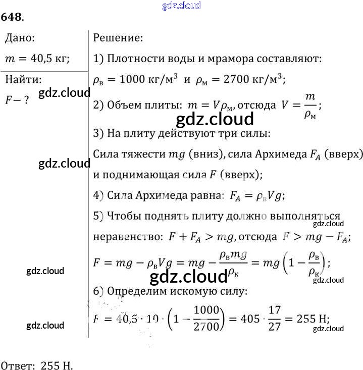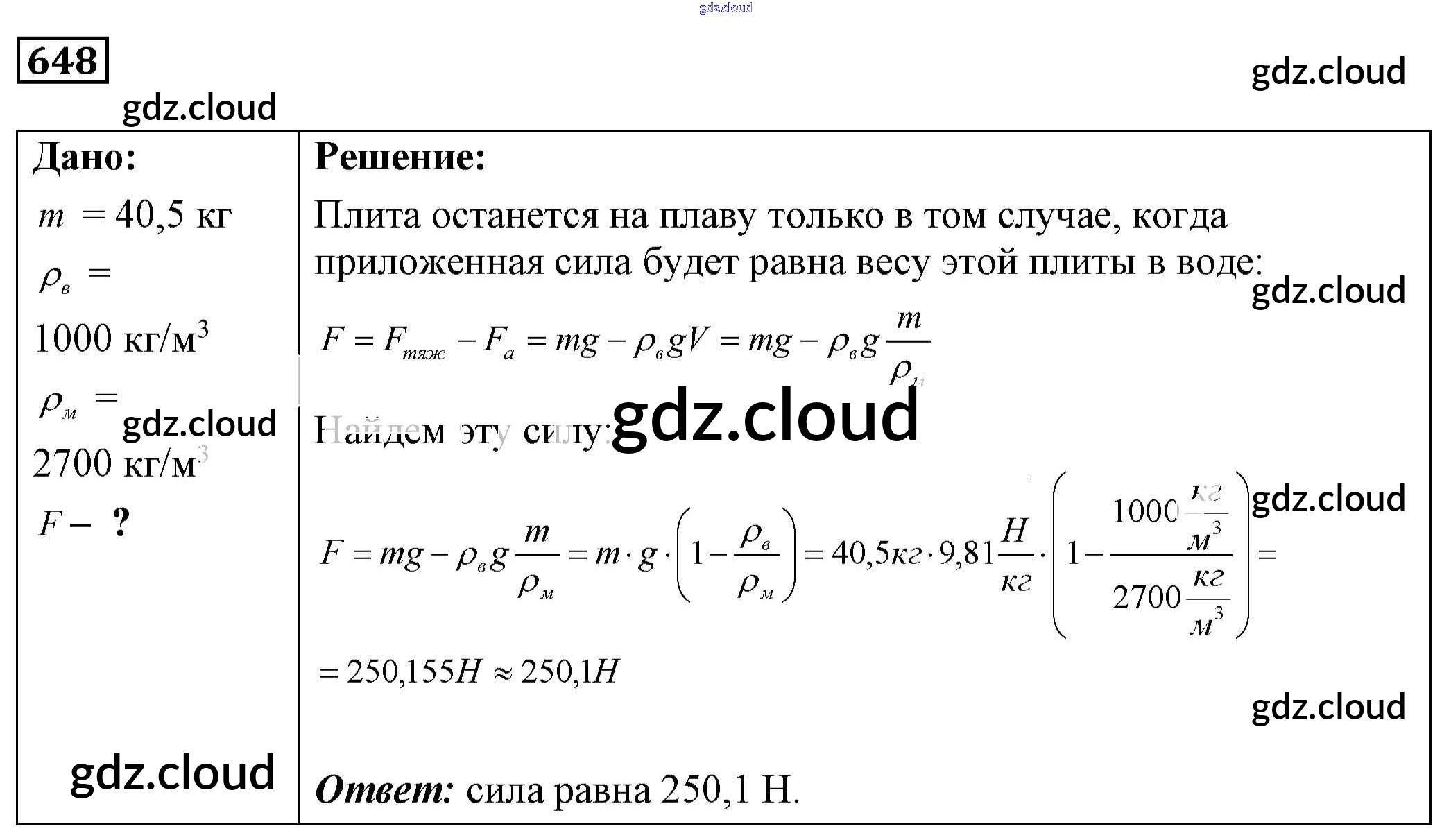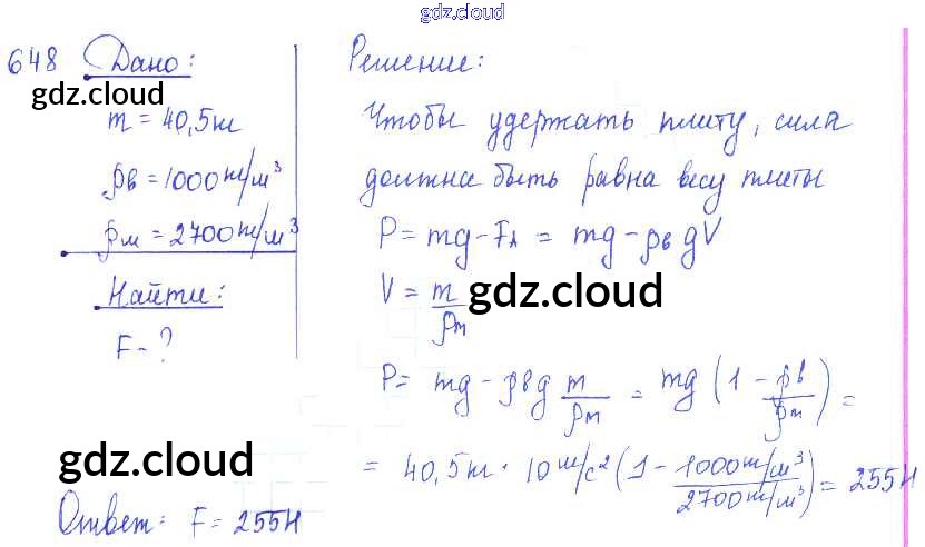 Ответ на задание 648 Сборник задач Физика за 7, 8, 9 (седьмой, восьмой, девятый) класс Лукашик, Иванова 2011