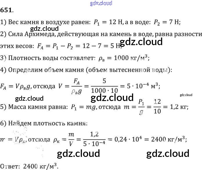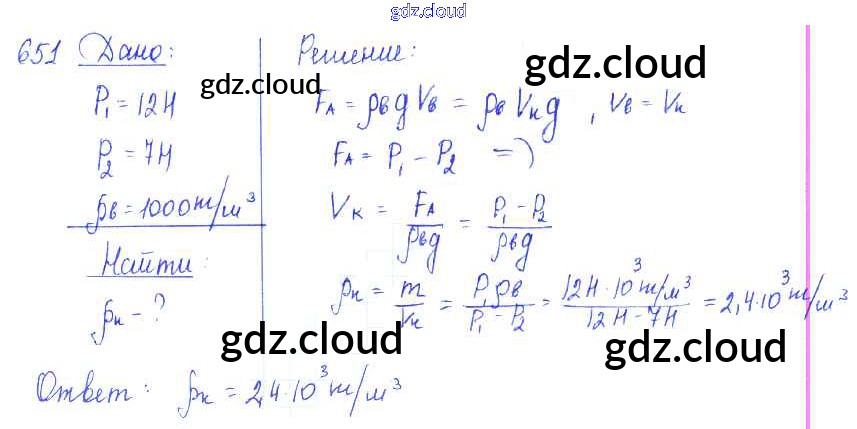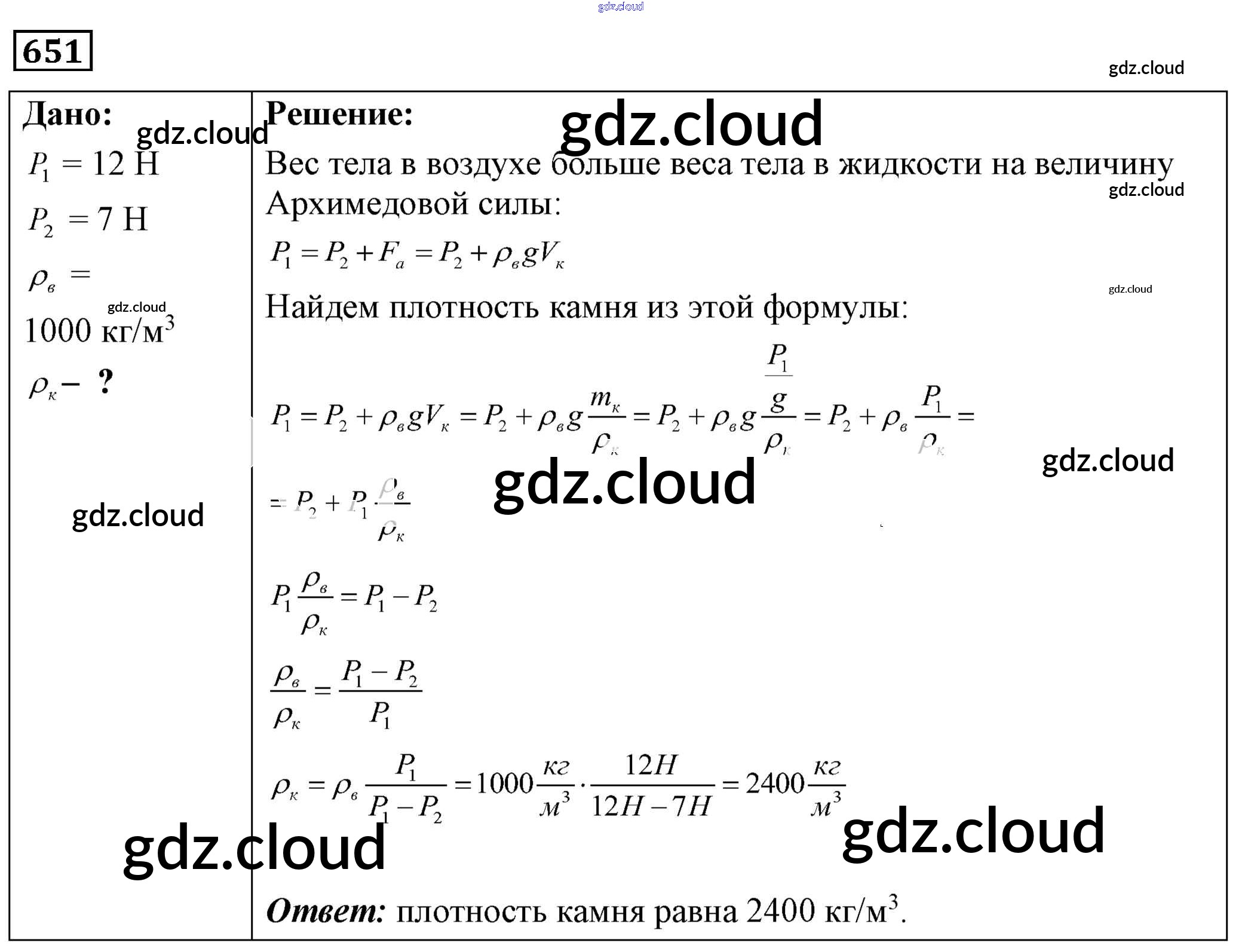 Ответ на задание 651 Сборник задач Физика за 7, 8, 9 (седьмой, восьмой, девятый) класс Лукашик, Иванова 2011