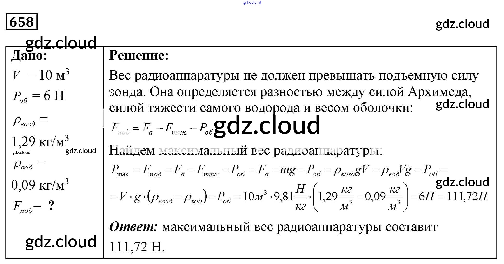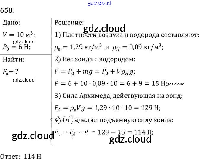 Ответ на задание 658 Сборник задач Физика за 7, 8, 9 (седьмой, восьмой, девятый) класс Лукашик, Иванова 2011