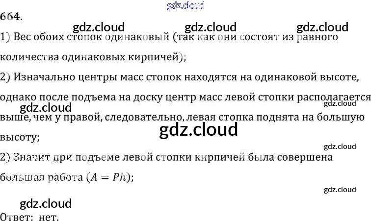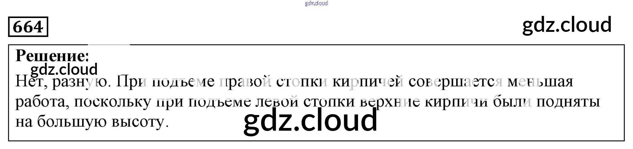 Ответ на задание 664 Сборник задач Физика за 7, 8, 9 (седьмой, восьмой, девятый) класс Лукашик, Иванова 2011