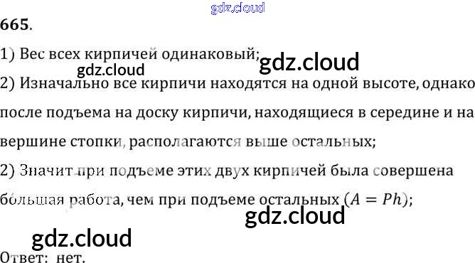 Ответ на задание 665 Сборник задач Физика за 7, 8, 9 (седьмой, восьмой, девятый) класс Лукашик, Иванова 2011