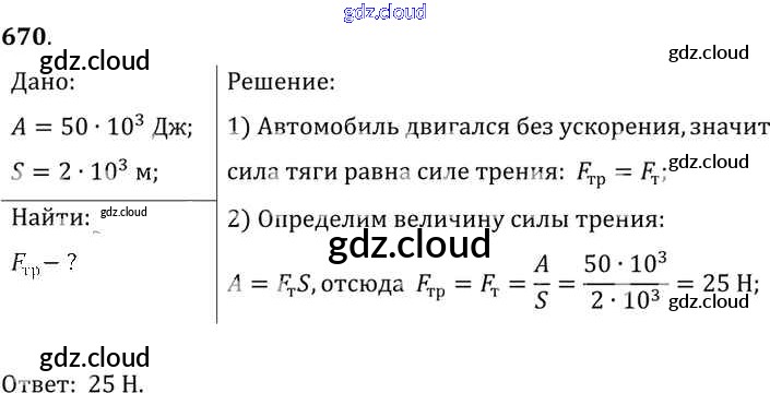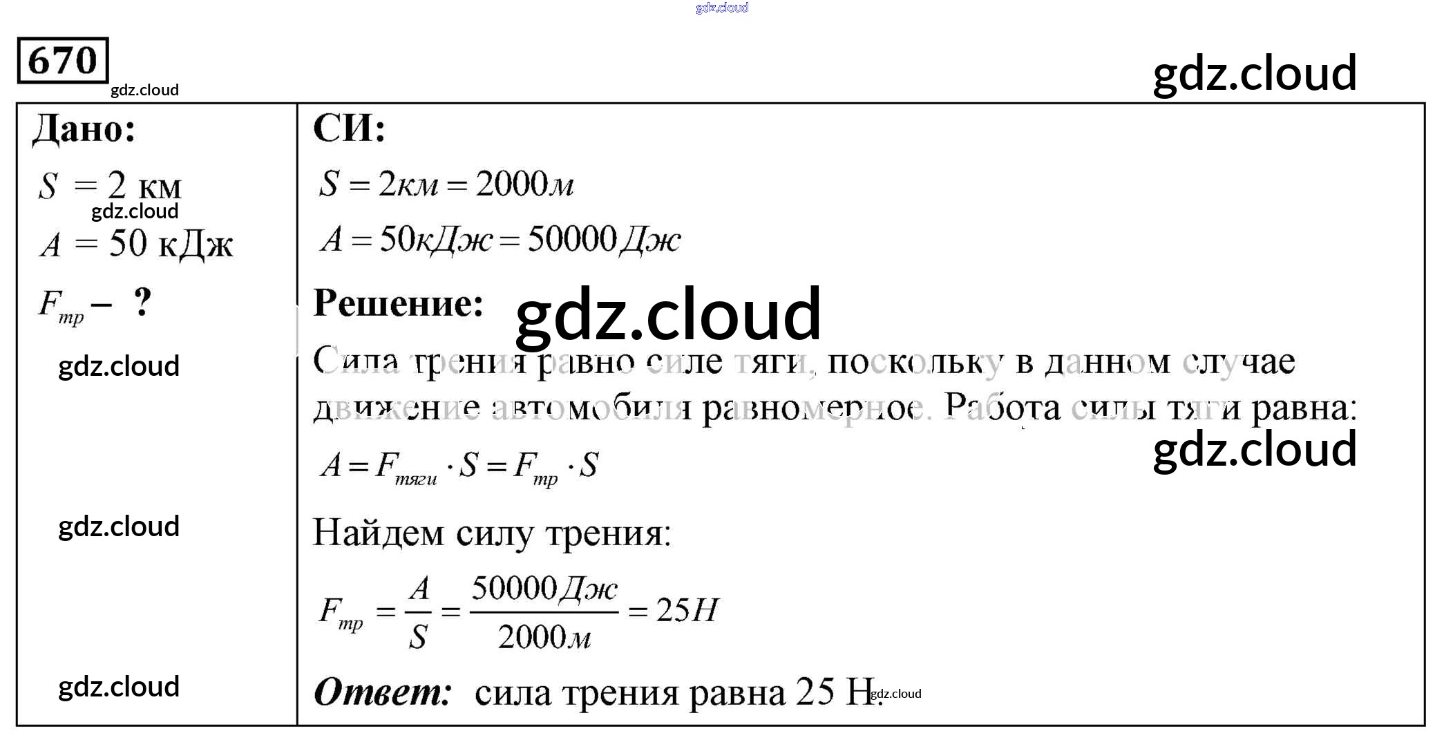 Ответ на задание 670 Сборник задач Физика за 7, 8, 9 (седьмой, восьмой, девятый) класс Лукашик, Иванова 2011