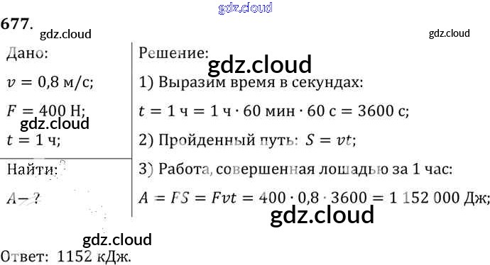 Ответ на задание 677 Сборник задач Физика за 7, 8, 9 (седьмой, восьмой, девятый) класс Лукашик, Иванова 2011