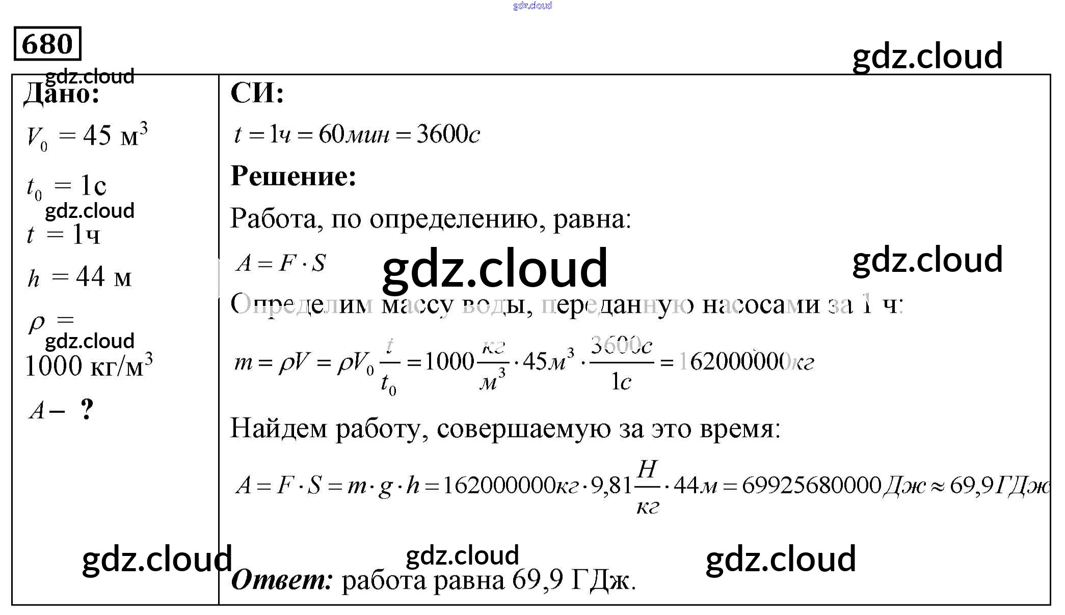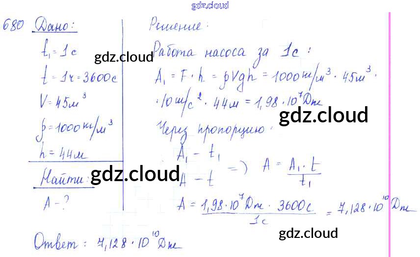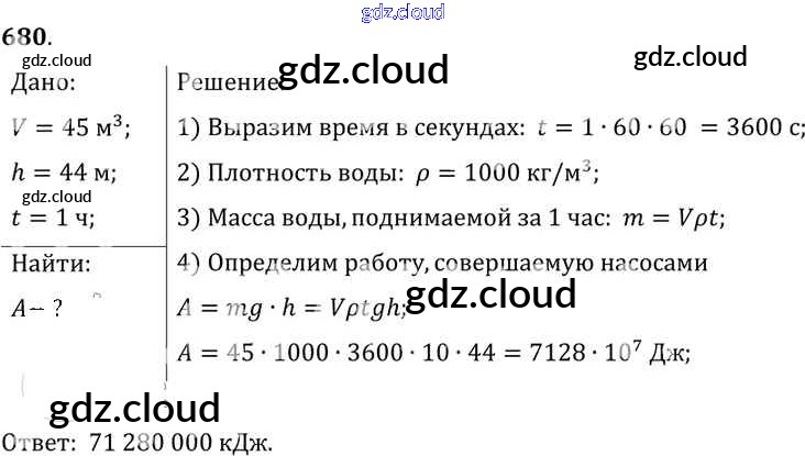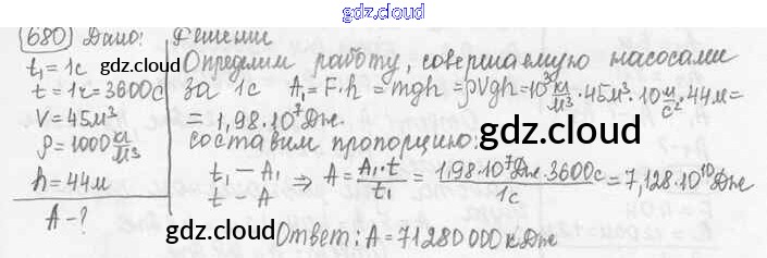 Ответ на задание 680 Сборник задач Физика за 7, 8, 9 (седьмой, восьмой, девятый) класс Лукашик, Иванова 2011