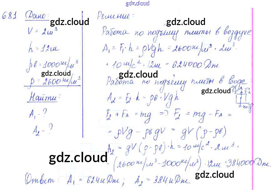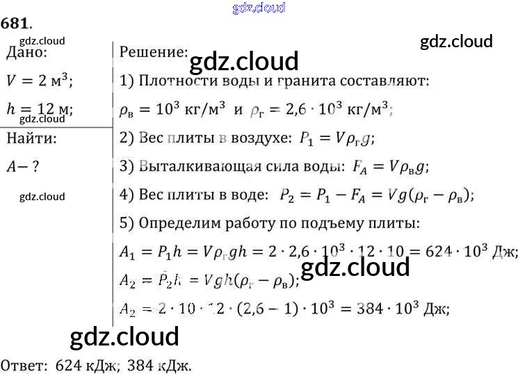 Ответ на задание 681 Сборник задач Физика за 7, 8, 9 (седьмой, восьмой, девятый) класс Лукашик, Иванова 2011