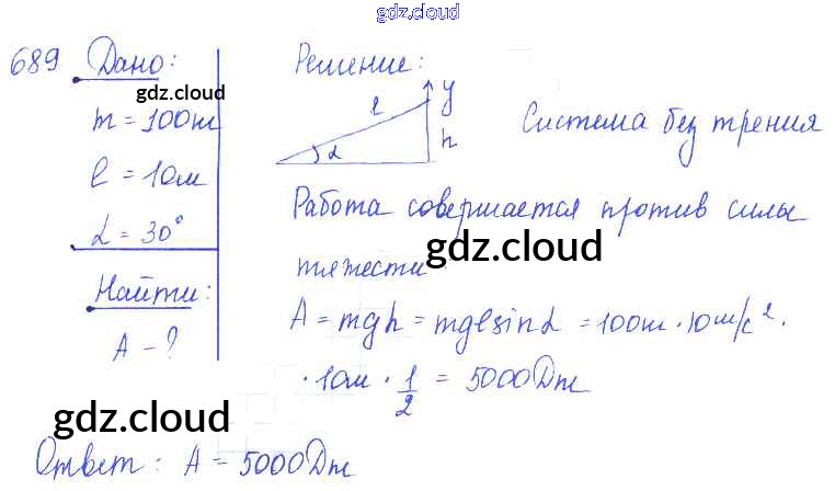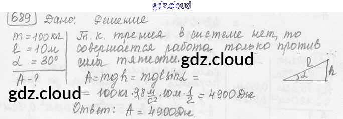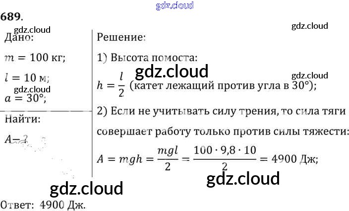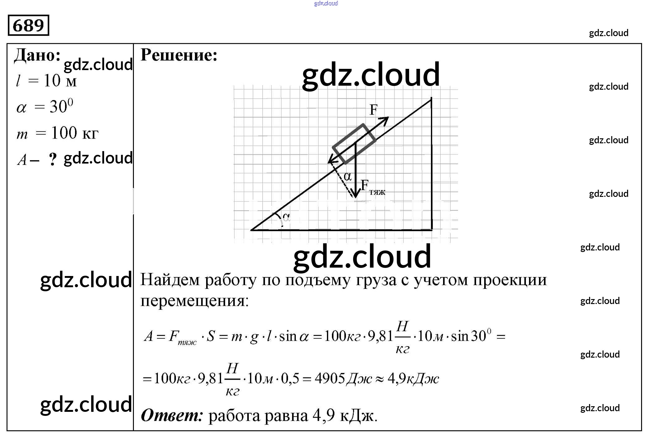 Ответ на задание 689 Сборник задач Физика за 7, 8, 9 (седьмой, восьмой, девятый) класс Лукашик, Иванова 2011