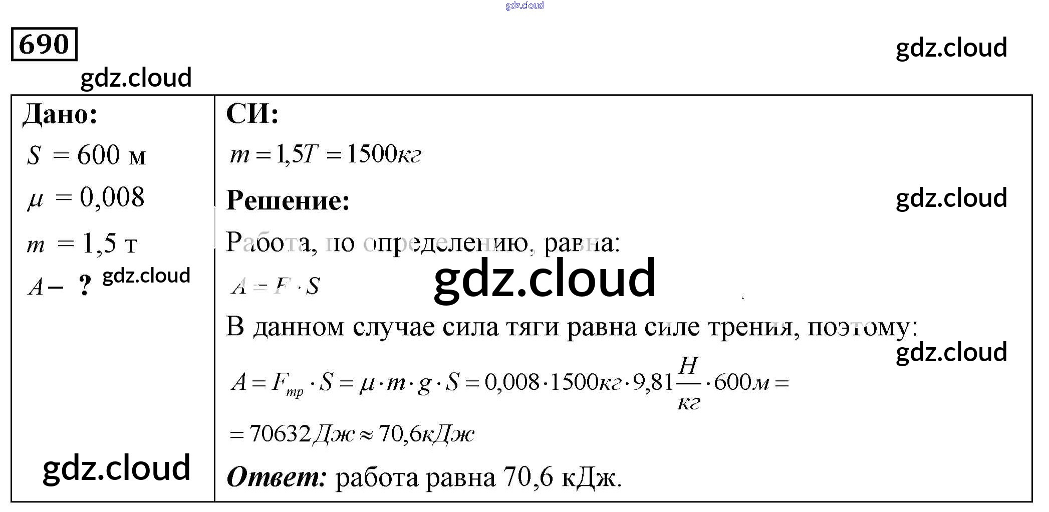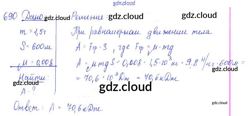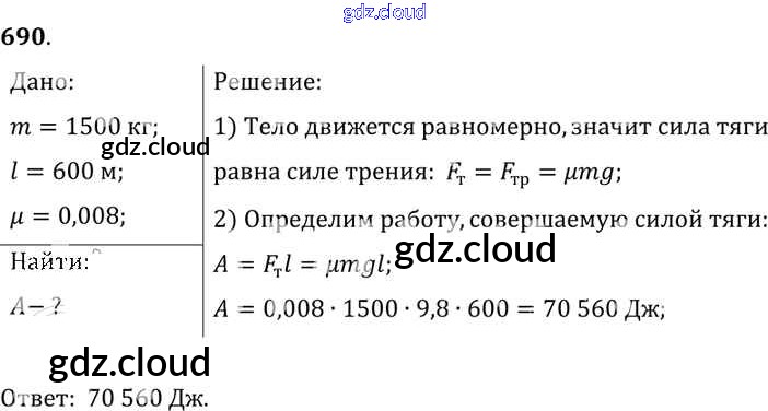 Ответ на задание 690 Сборник задач Физика за 7, 8, 9 (седьмой, восьмой, девятый) класс Лукашик, Иванова 2011