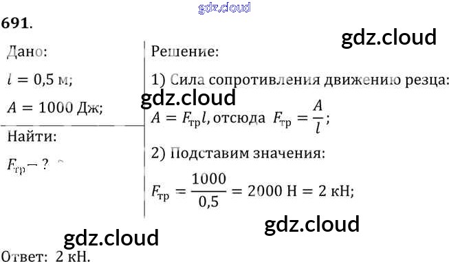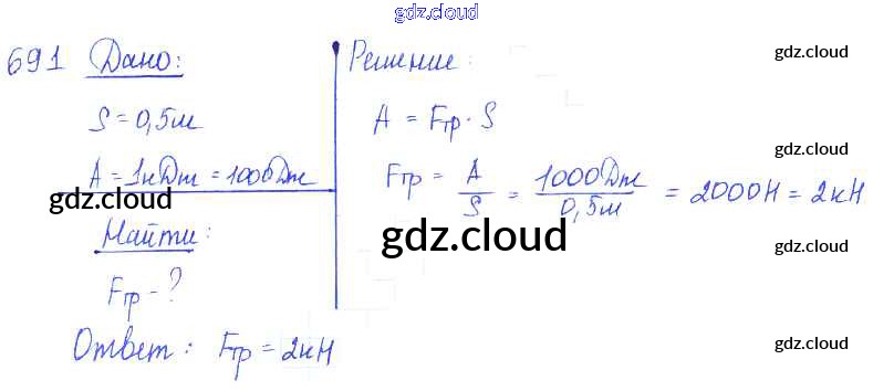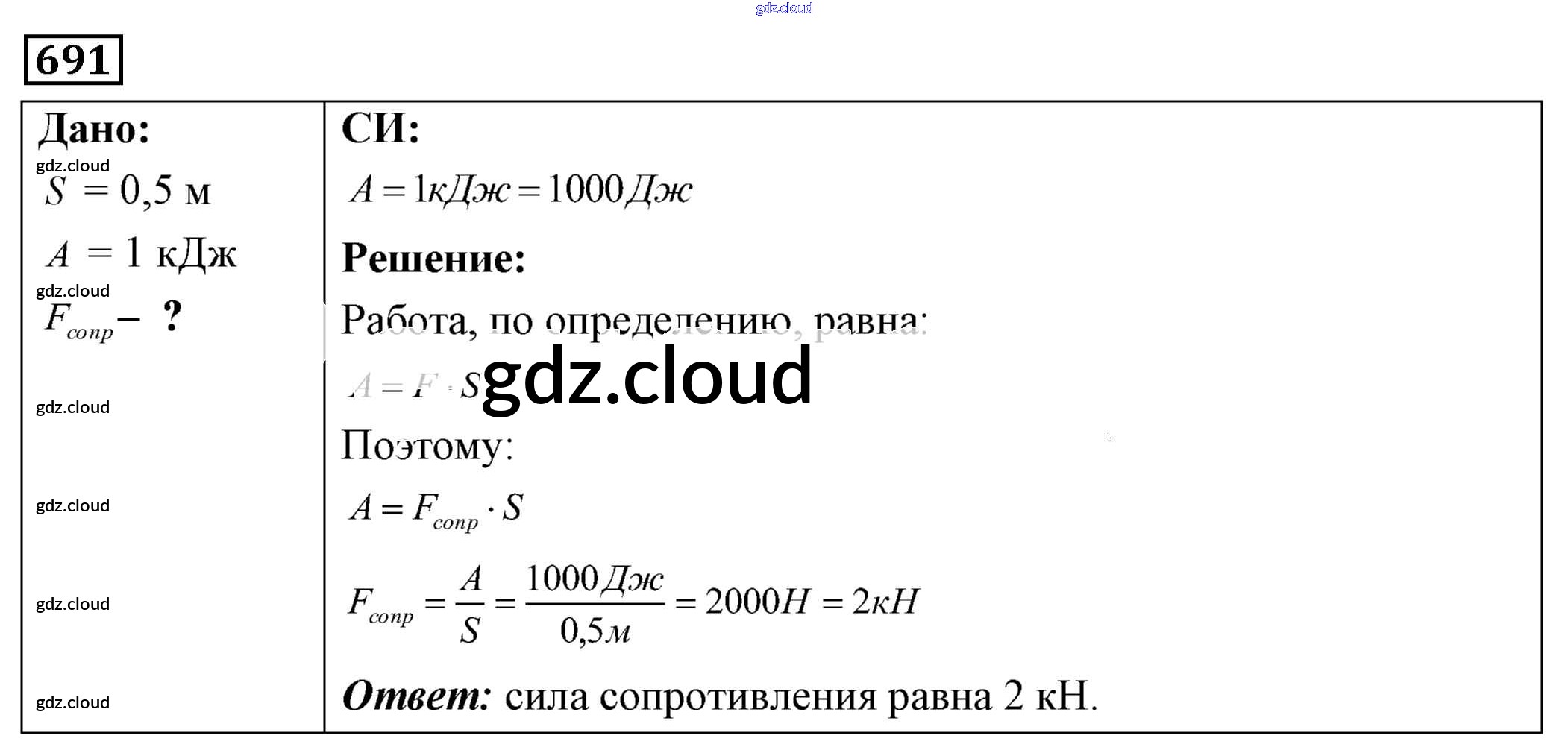 Ответ на задание 691 Сборник задач Физика за 7, 8, 9 (седьмой, восьмой, девятый) класс Лукашик, Иванова 2011