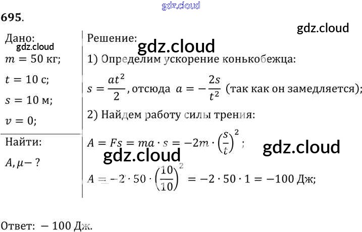 Ответ на задание 695 Сборник задач Физика за 7, 8, 9 (седьмой, восьмой, девятый) класс Лукашик, Иванова 2011