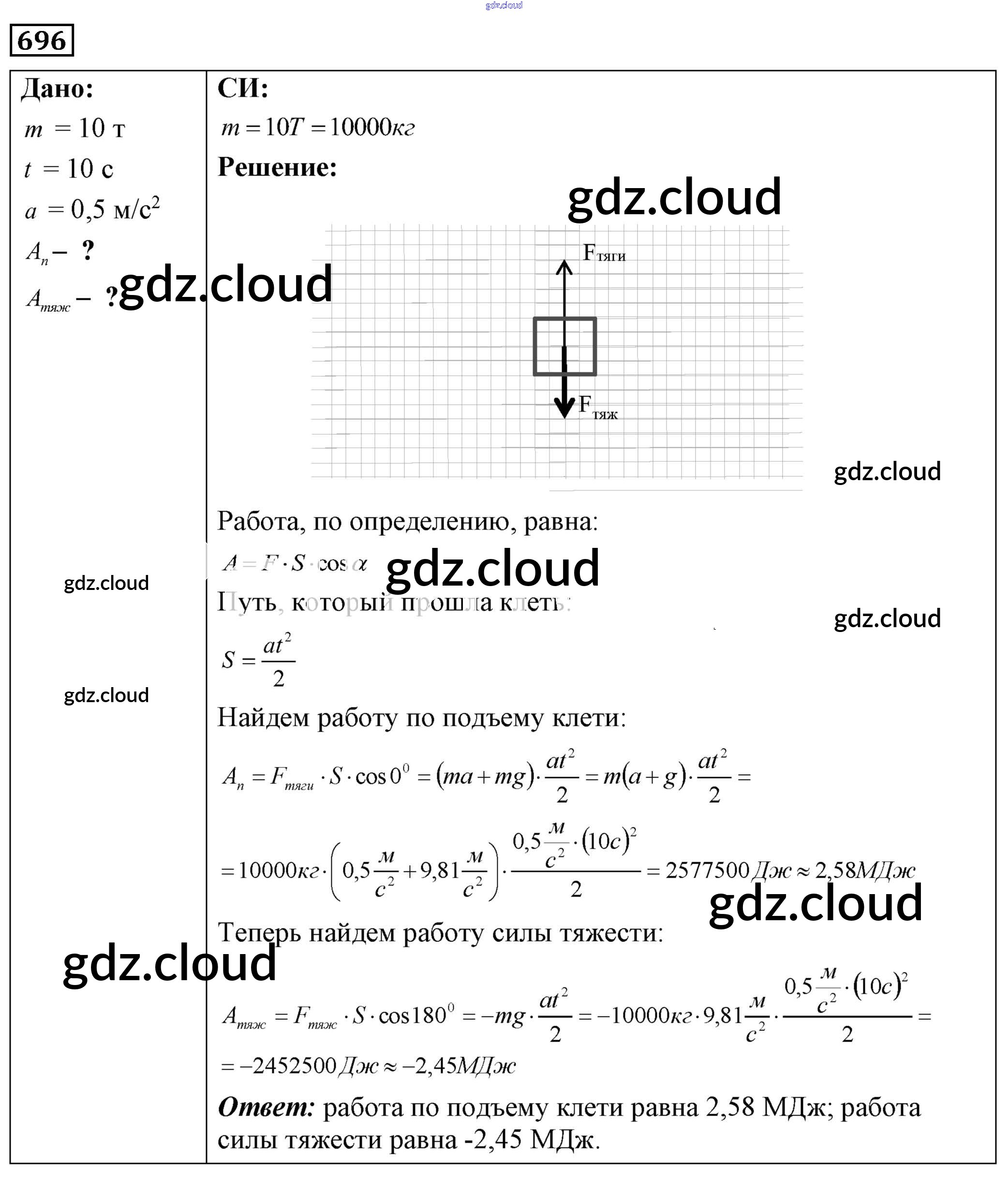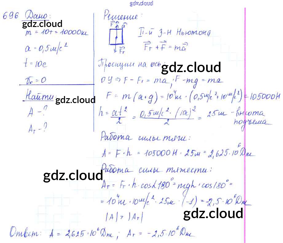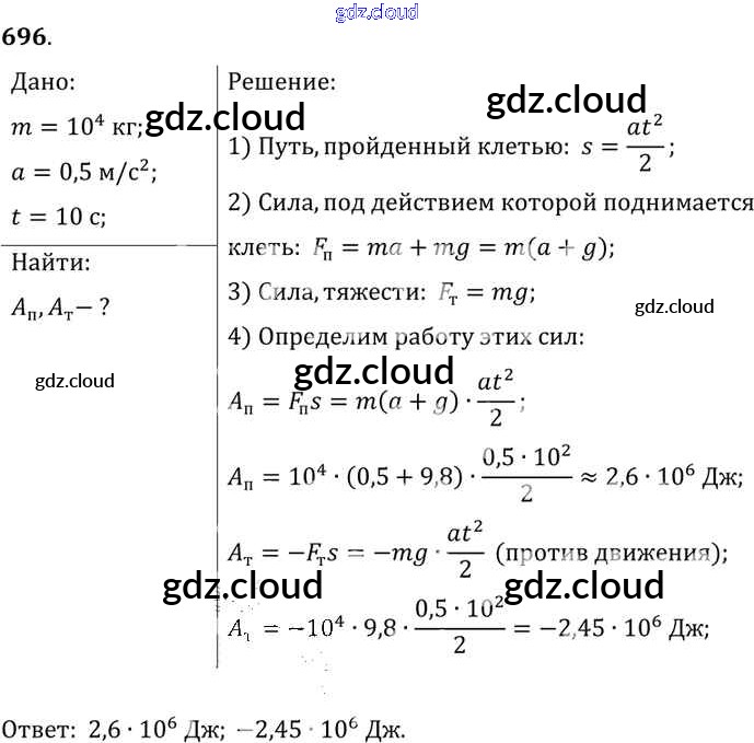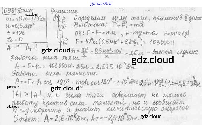 Ответ на задание 696 Сборник задач Физика за 7, 8, 9 (седьмой, восьмой, девятый) класс Лукашик, Иванова 2011