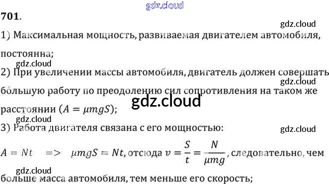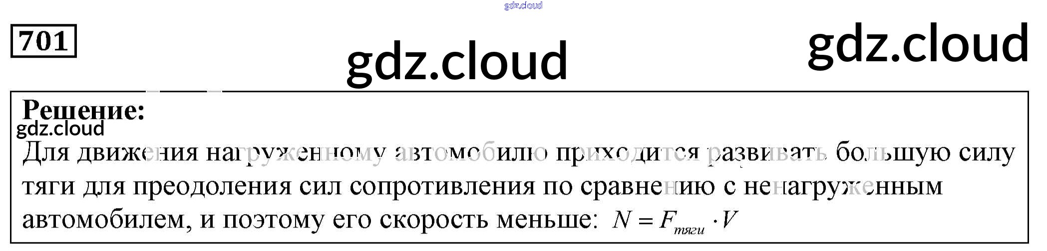 Ответ на задание 701 Сборник задач Физика за 7, 8, 9 (седьмой, восьмой, девятый) класс Лукашик, Иванова 2011