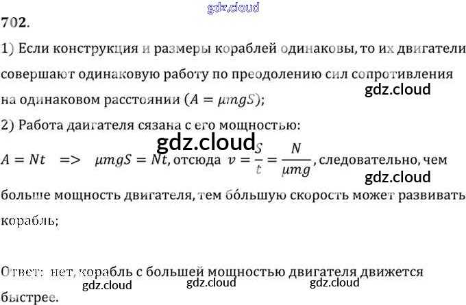 Ответ на задание 702 Сборник задач Физика за 7, 8, 9 (седьмой, восьмой, девятый) класс Лукашик, Иванова 2011