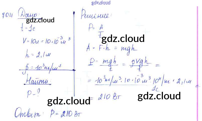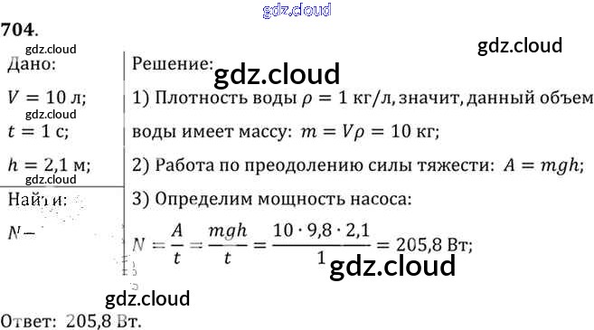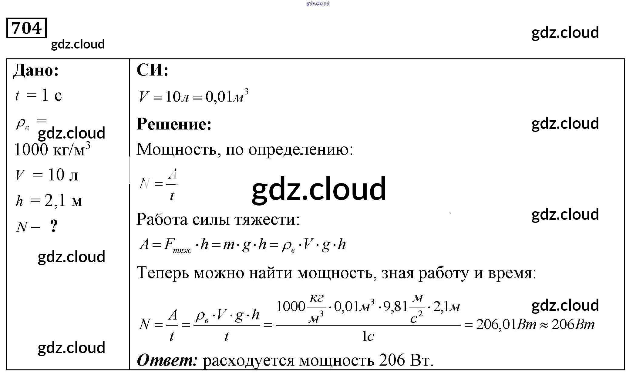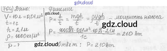 Ответ на задание 704 Сборник задач Физика за 7, 8, 9 (седьмой, восьмой, девятый) класс Лукашик, Иванова 2011