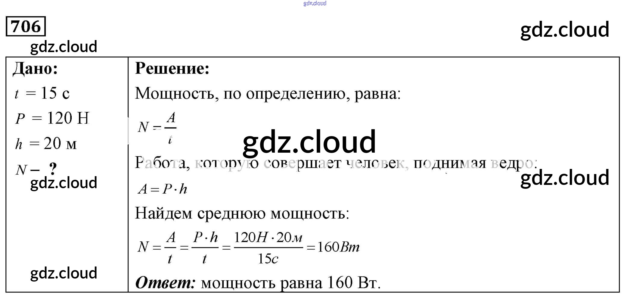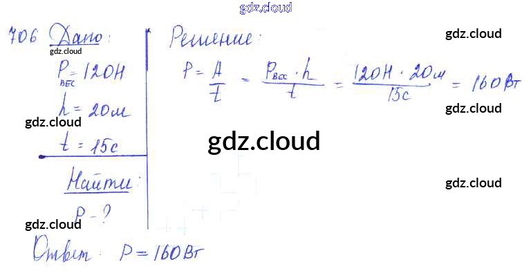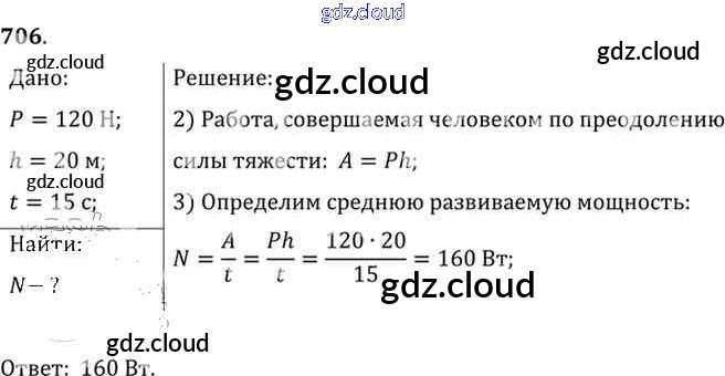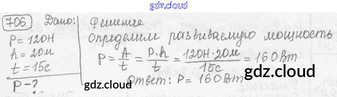 Ответ на задание 706 Сборник задач Физика за 7, 8, 9 (седьмой, восьмой, девятый) класс Лукашик, Иванова 2011