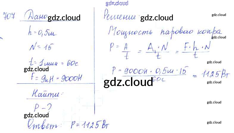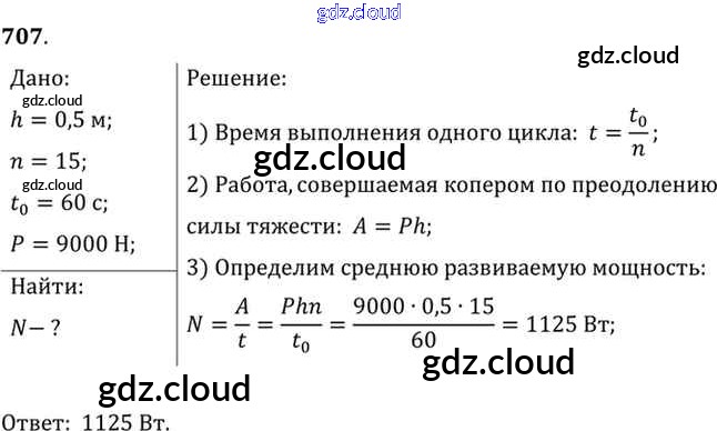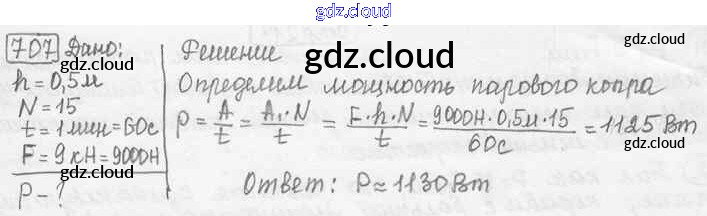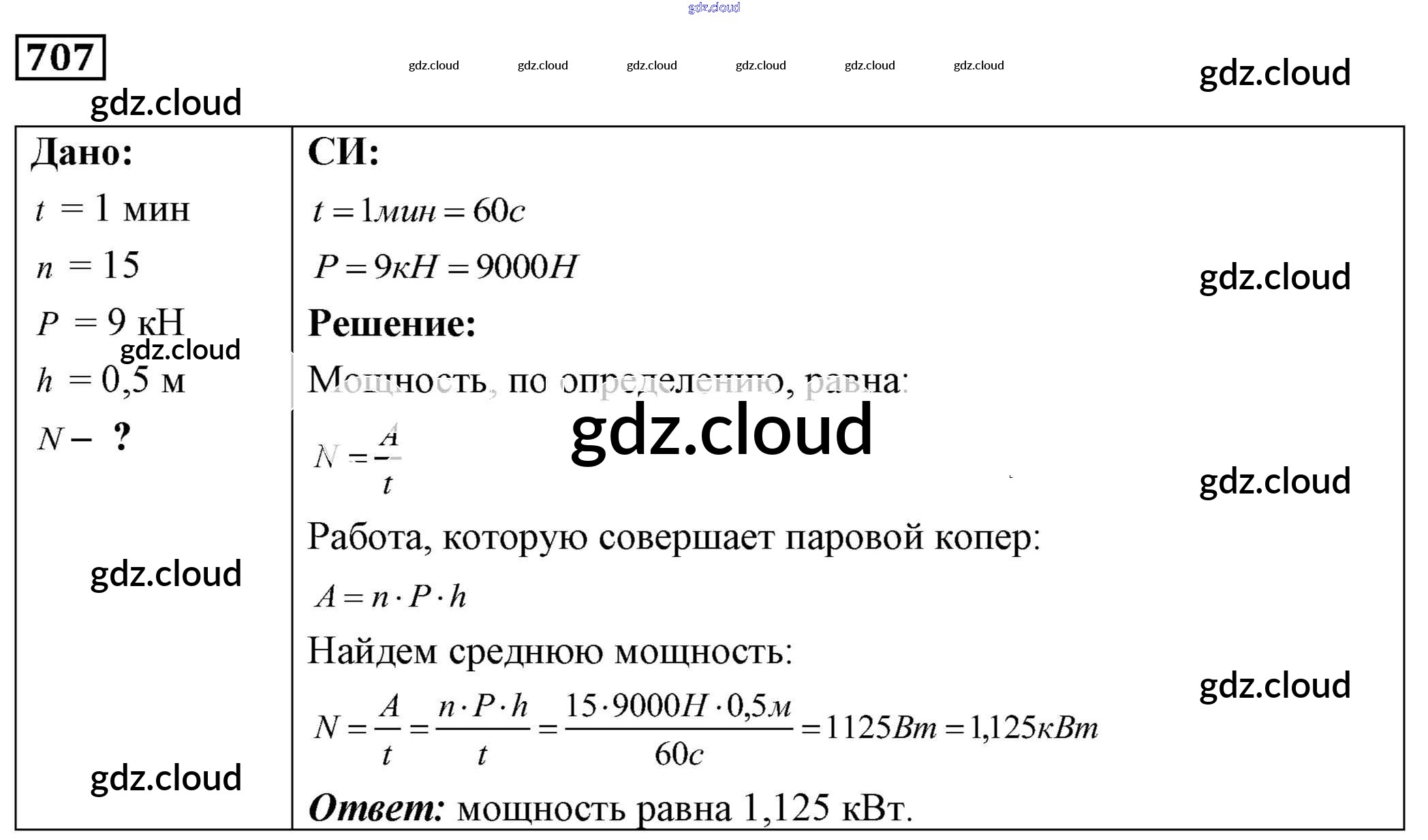 Ответ на задание 707 Сборник задач Физика за 7, 8, 9 (седьмой, восьмой, девятый) класс Лукашик, Иванова 2011