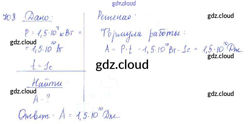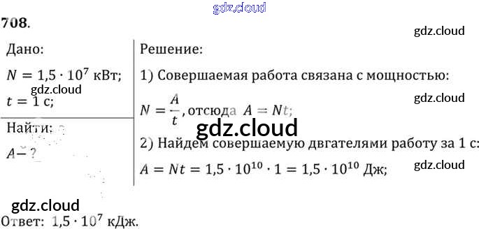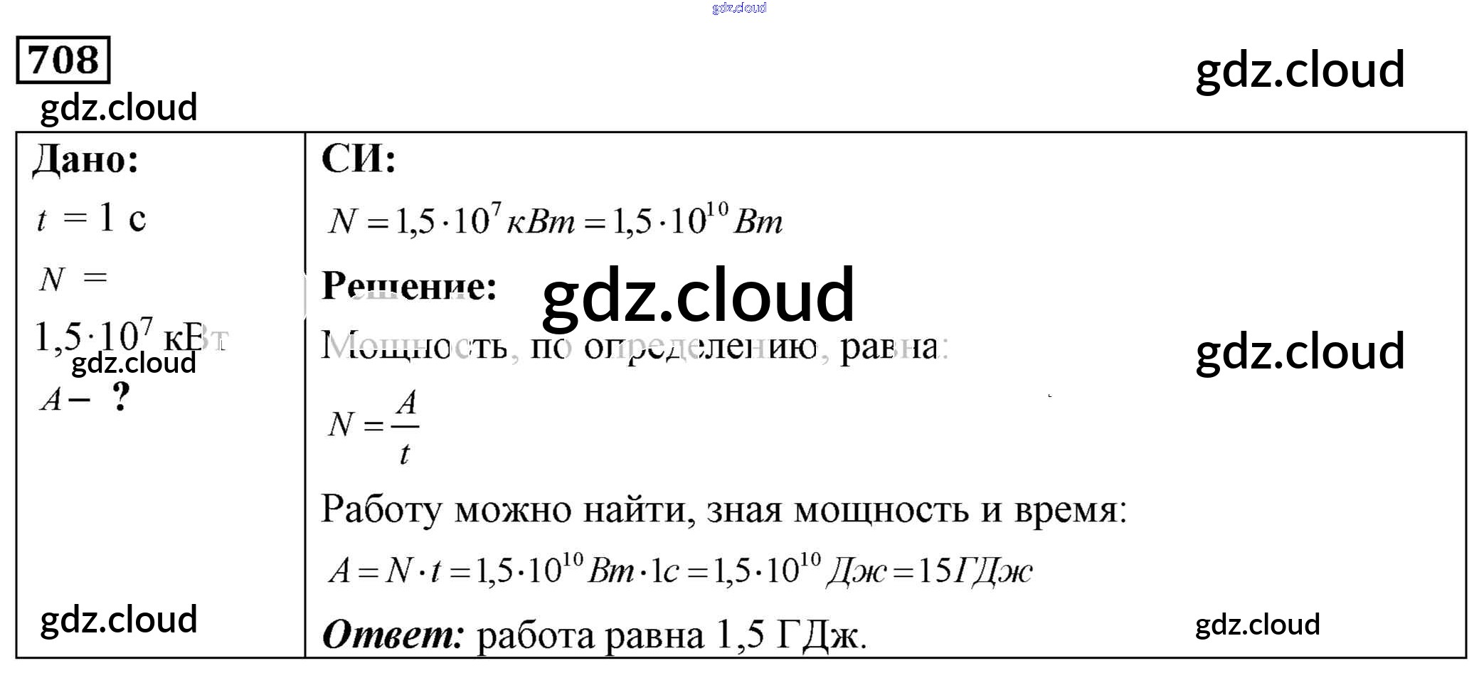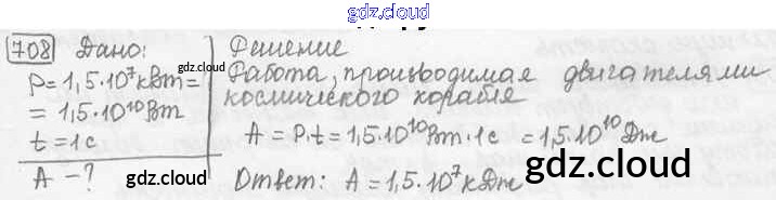 Ответ на задание 708 Сборник задач Физика за 7, 8, 9 (седьмой, восьмой, девятый) класс Лукашик, Иванова 2011