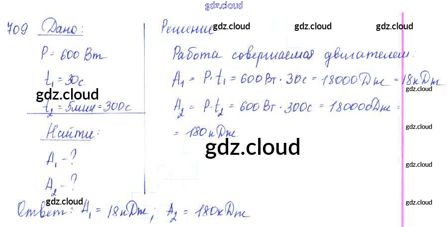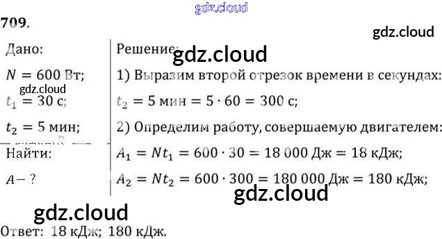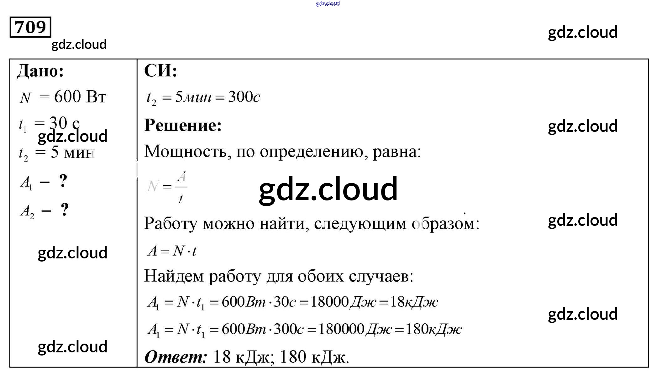 Ответ на задание 709 Сборник задач Физика за 7, 8, 9 (седьмой, восьмой, девятый) класс Лукашик, Иванова 2011