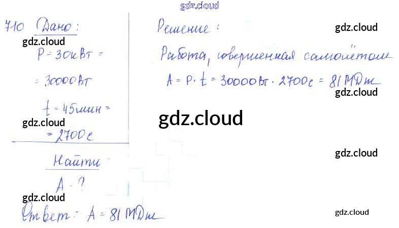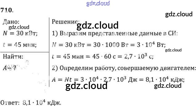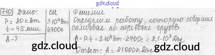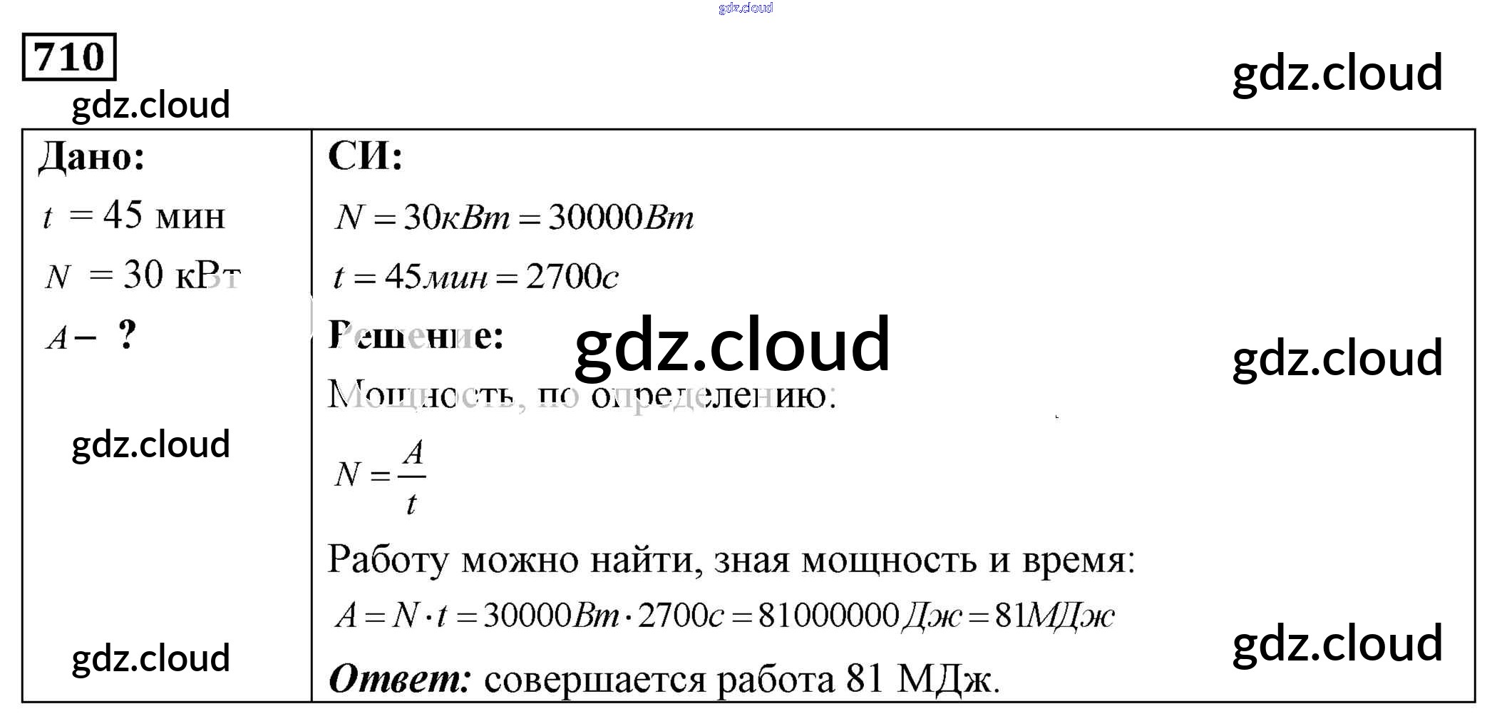 Ответ на задание 710 Сборник задач Физика за 7, 8, 9 (седьмой, восьмой, девятый) класс Лукашик, Иванова 2011