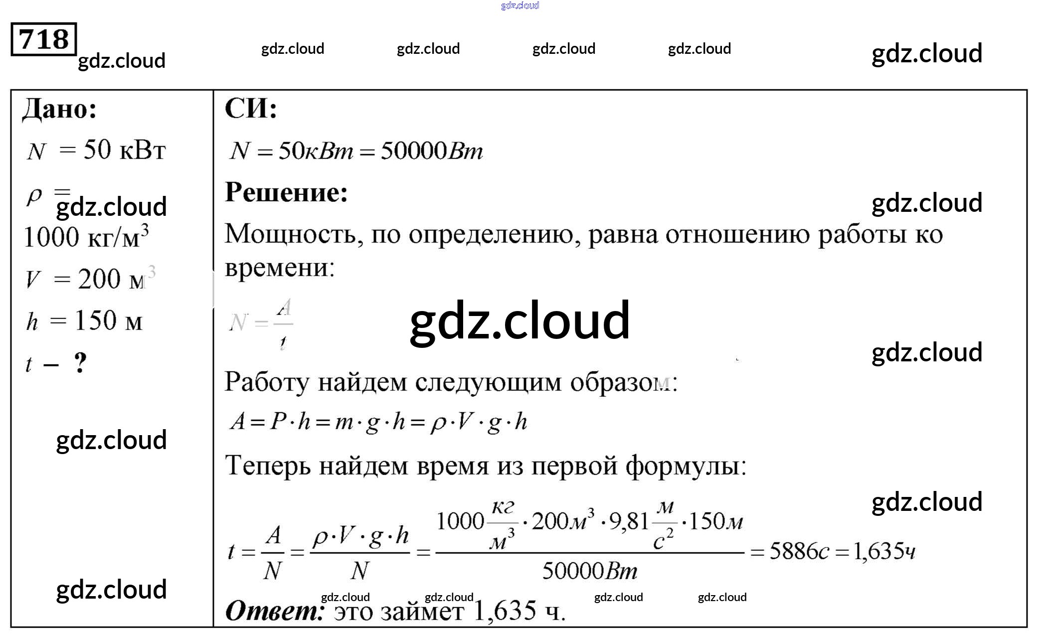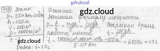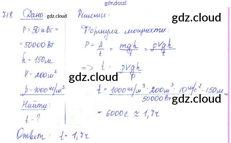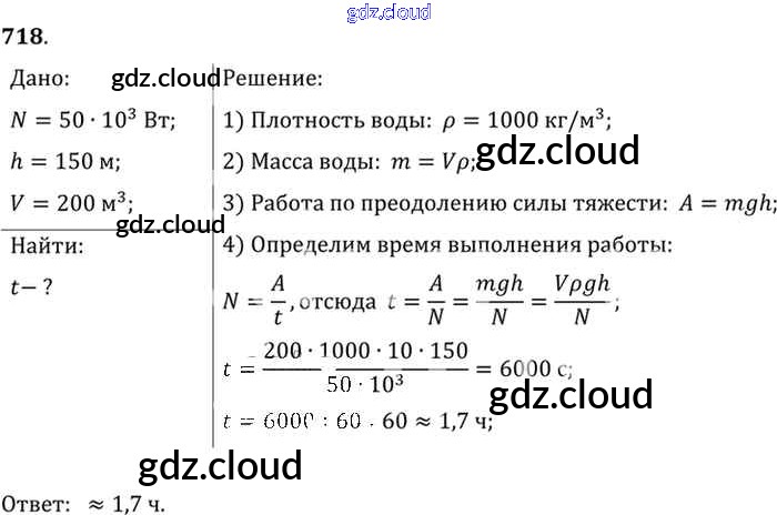 Ответ на задание 718 Сборник задач Физика за 7, 8, 9 (седьмой, восьмой, девятый) класс Лукашик, Иванова 2011