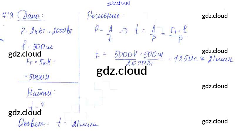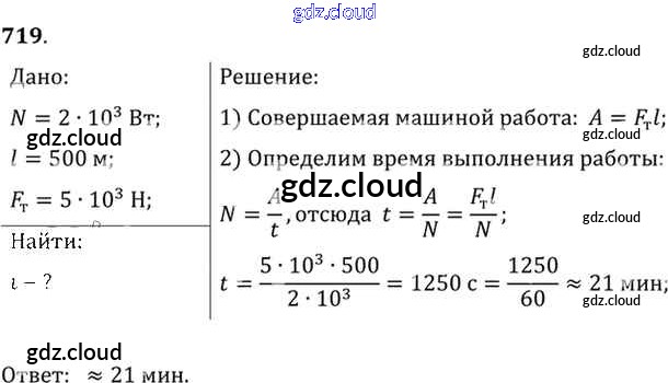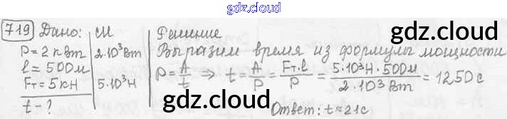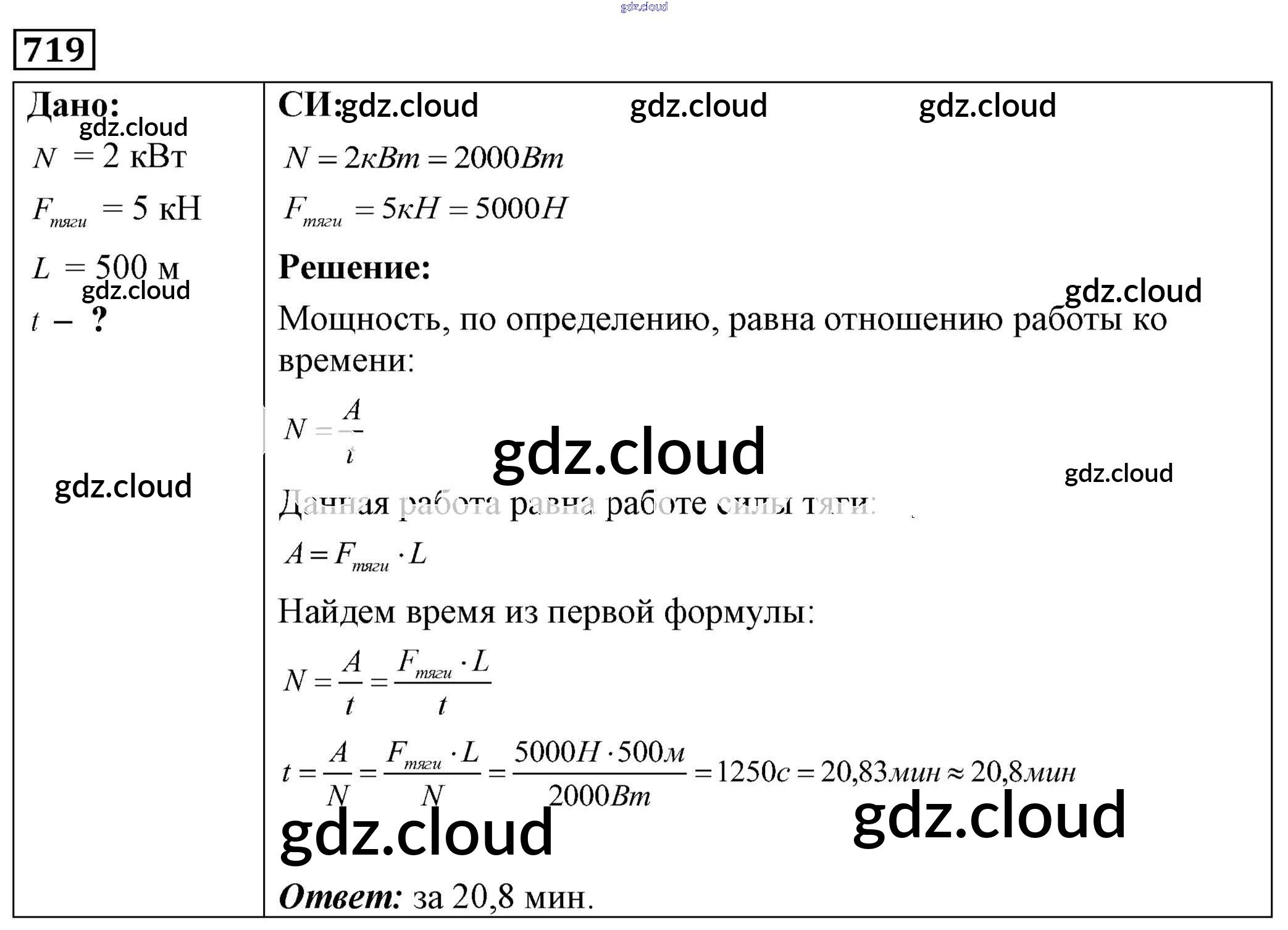 Ответ на задание 719 Сборник задач Физика за 7, 8, 9 (седьмой, восьмой, девятый) класс Лукашик, Иванова 2011