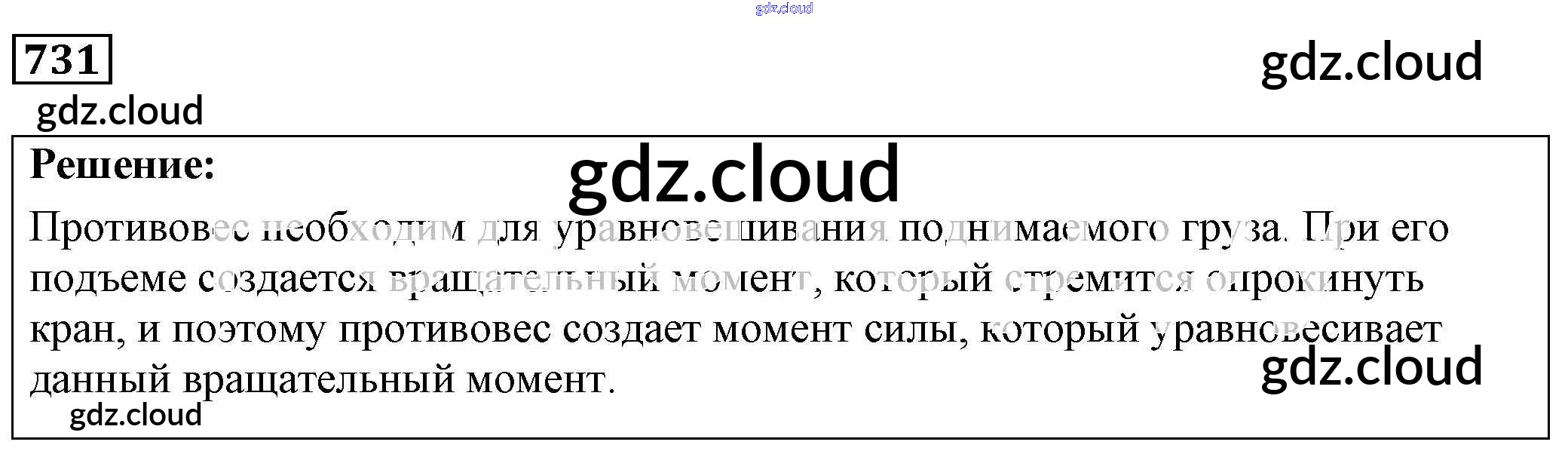 Ответ на задание 731 Сборник задач Физика за 7, 8, 9 (седьмой, восьмой, девятый) класс Лукашик, Иванова 2011
