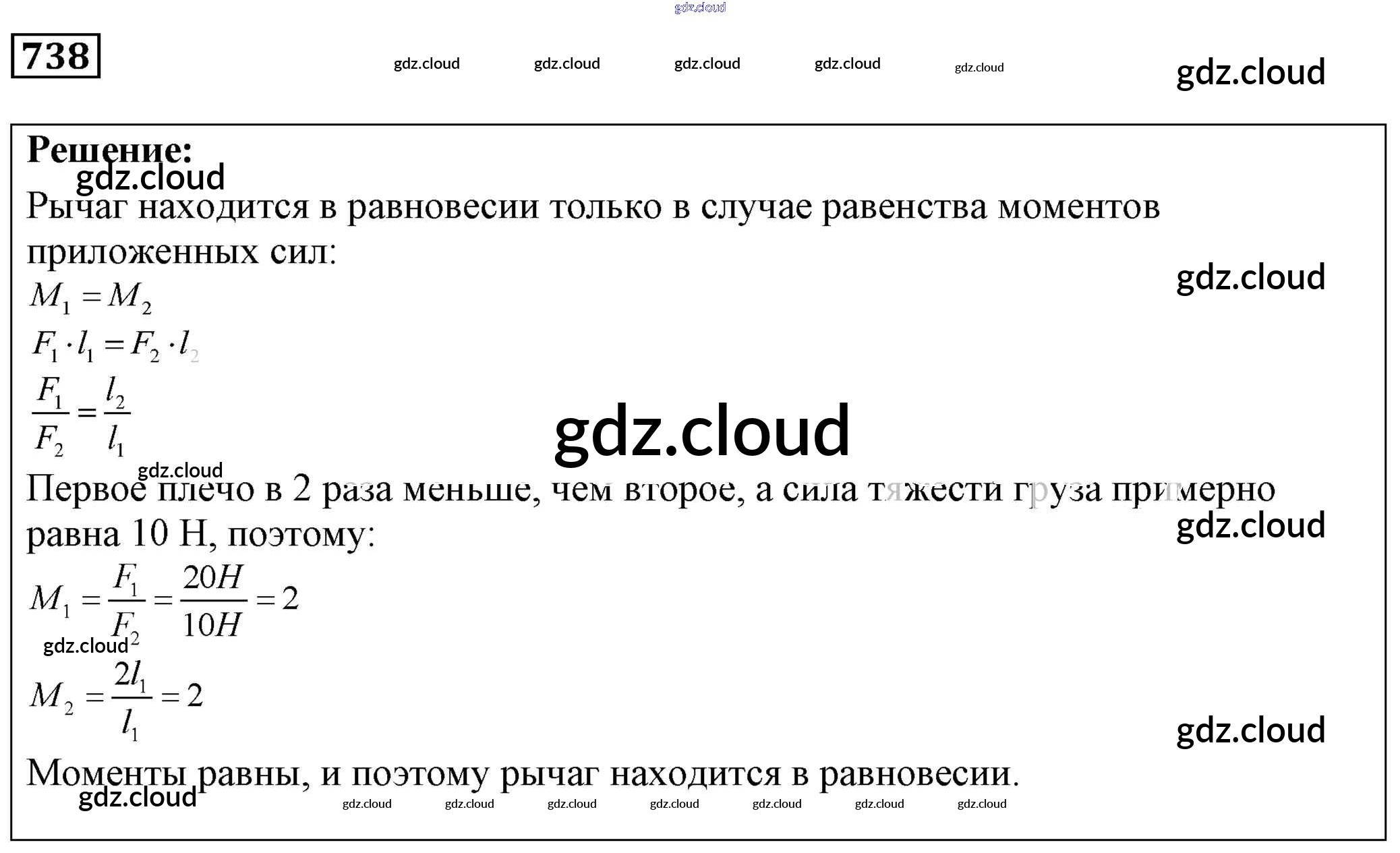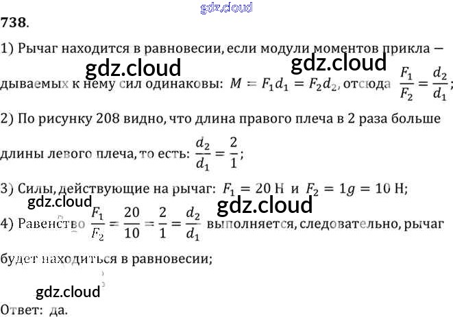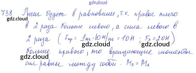 Ответ на задание 738 Сборник задач Физика за 7, 8, 9 (седьмой, восьмой, девятый) класс Лукашик, Иванова 2011