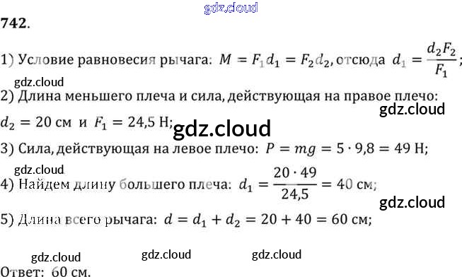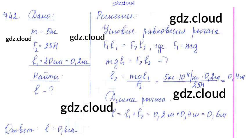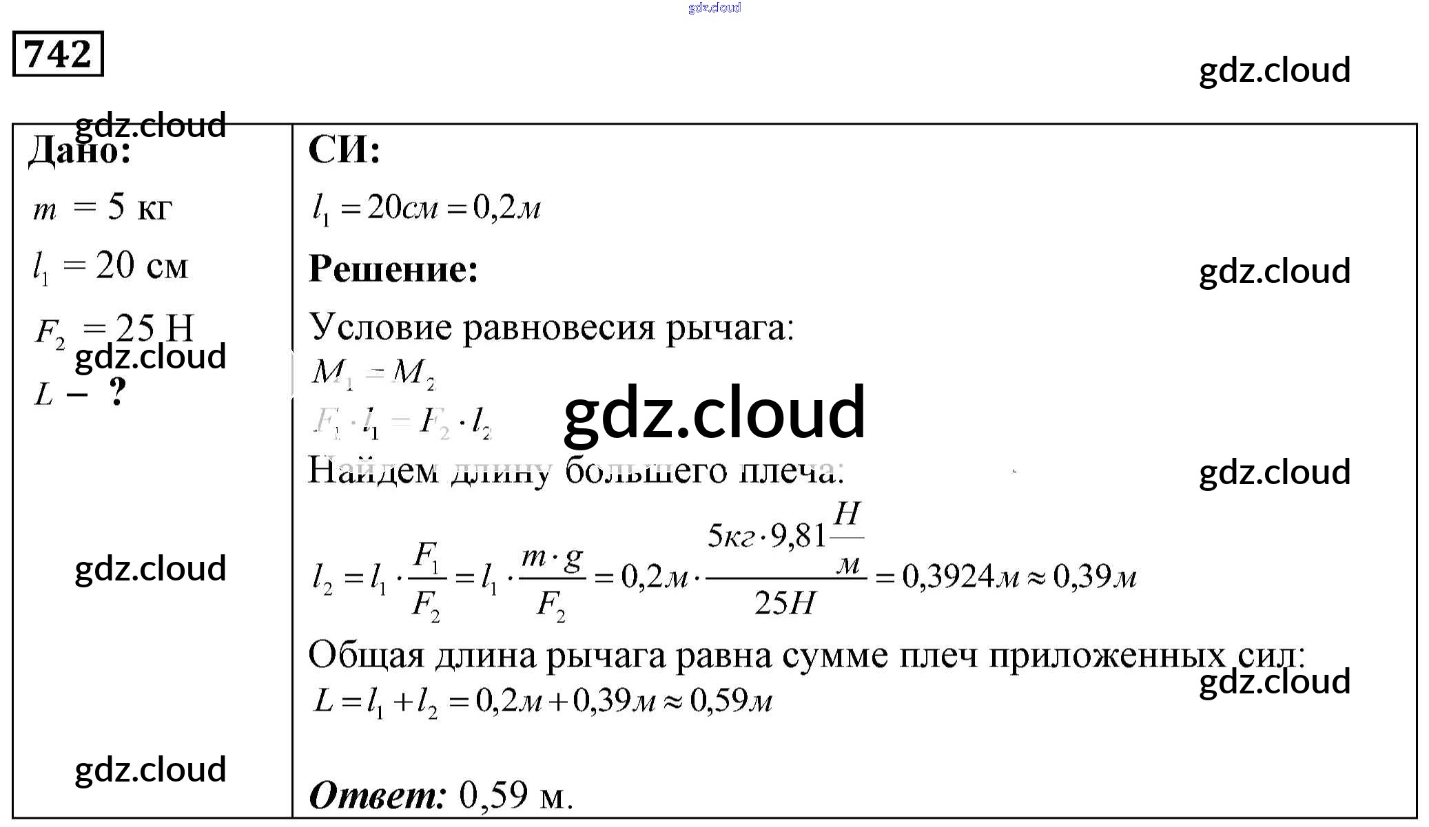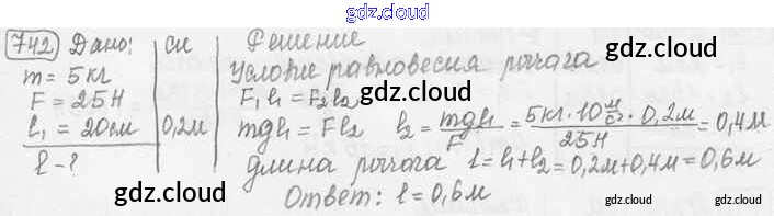Ответ на задание 742 Сборник задач Физика за 7, 8, 9 (седьмой, восьмой, девятый) класс Лукашик, Иванова 2011