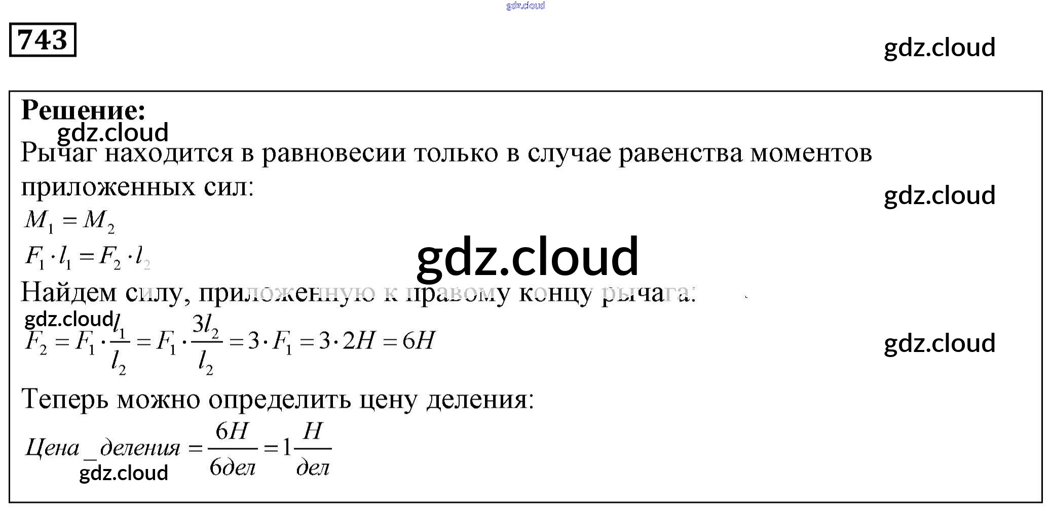 Ответ на задание 743 Сборник задач Физика за 7, 8, 9 (седьмой, восьмой, девятый) класс Лукашик, Иванова 2011