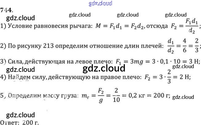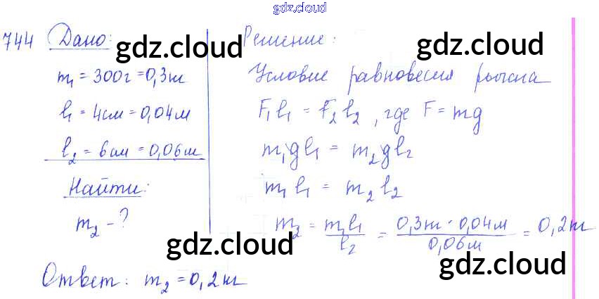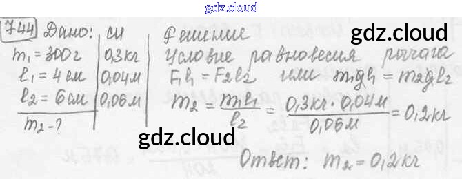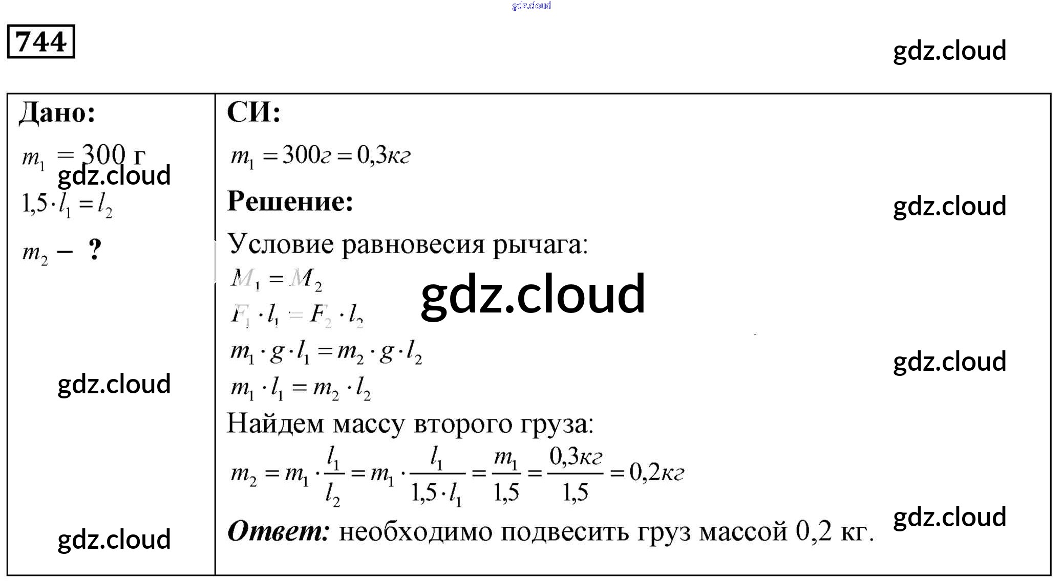 Ответ на задание 744 Сборник задач Физика за 7, 8, 9 (седьмой, восьмой, девятый) класс Лукашик, Иванова 2011