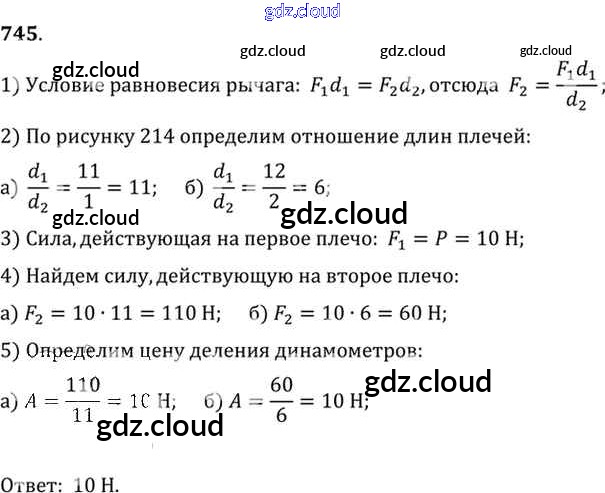 Ответ на задание 745 Сборник задач Физика за 7, 8, 9 (седьмой, восьмой, девятый) класс Лукашик, Иванова 2011