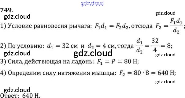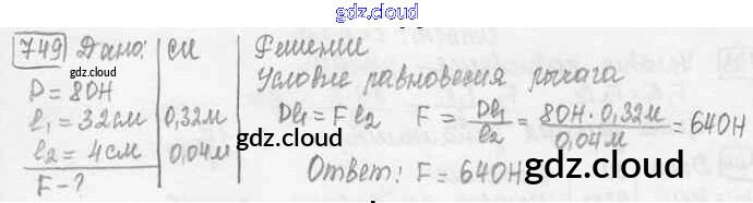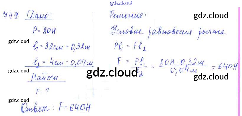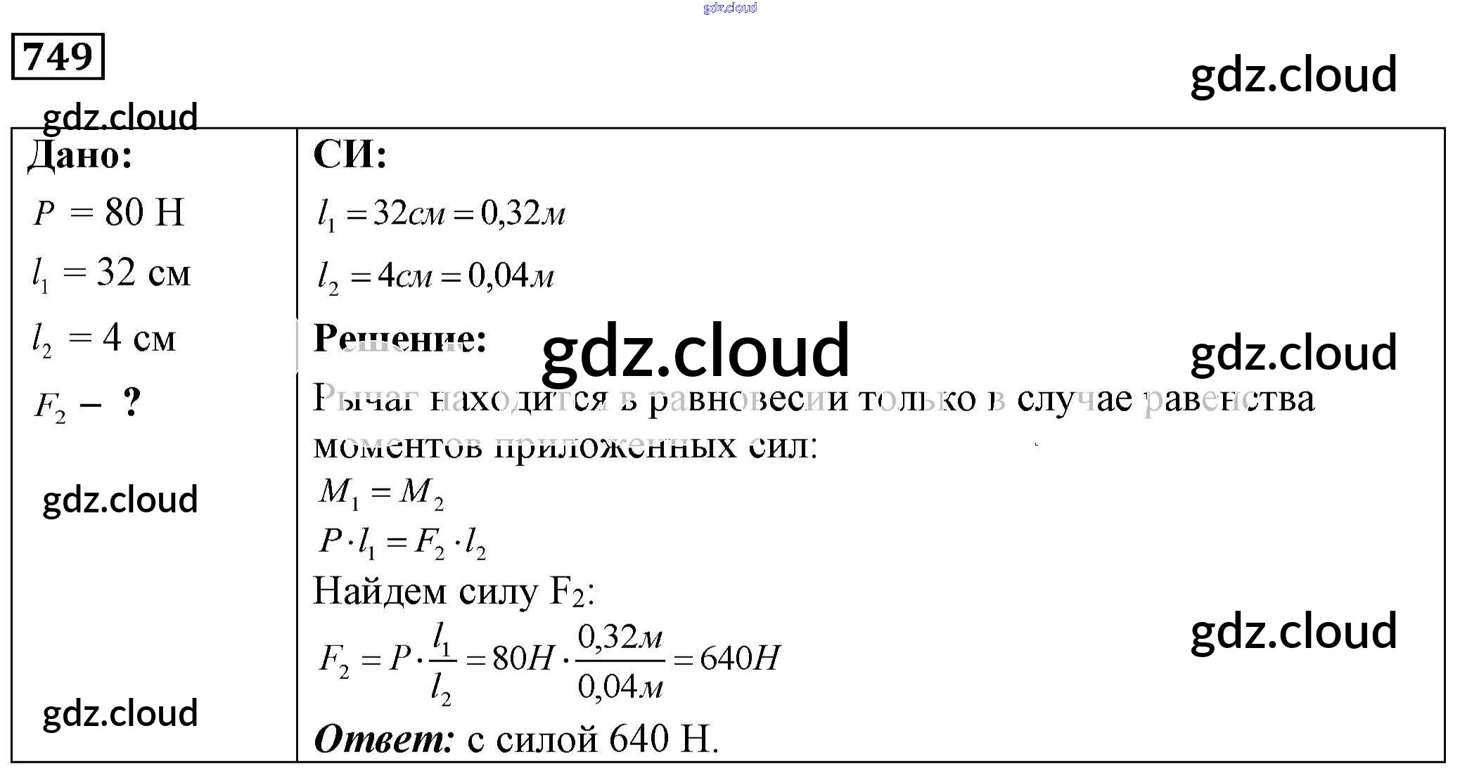 Ответ на задание 749 Сборник задач Физика за 7, 8, 9 (седьмой, восьмой, девятый) класс Лукашик, Иванова 2011