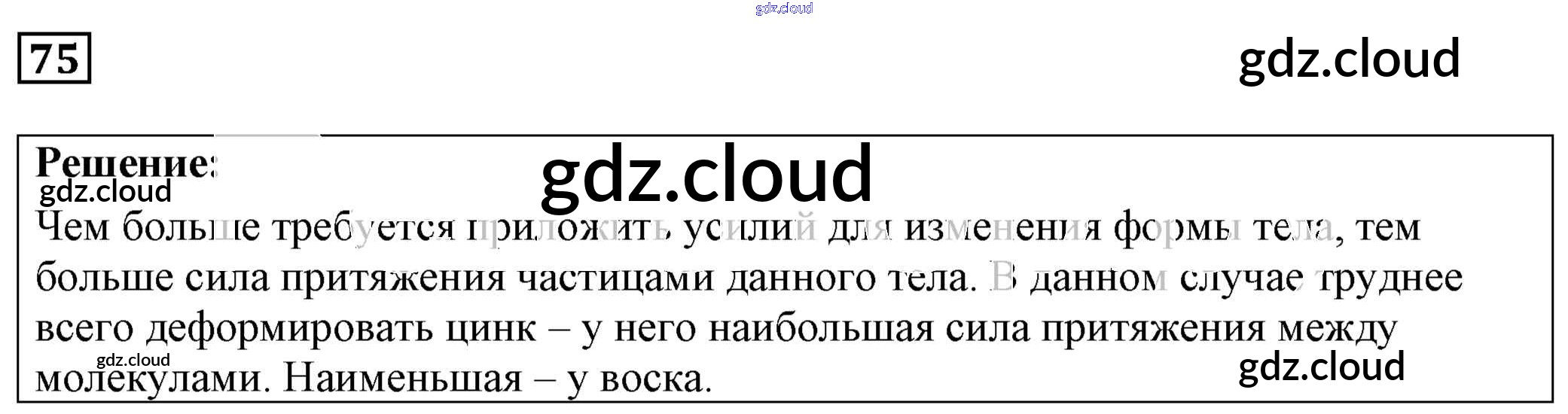 Ответ на задание 75 Сборник задач Физика за 7, 8, 9 (седьмой, восьмой, девятый) класс Лукашик, Иванова 2011