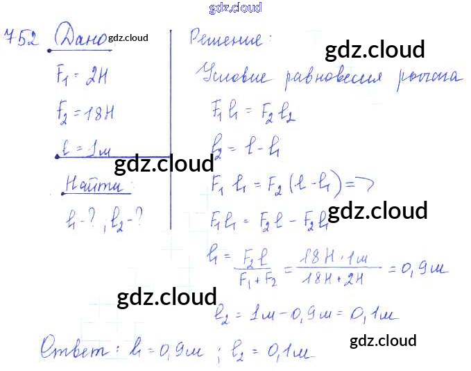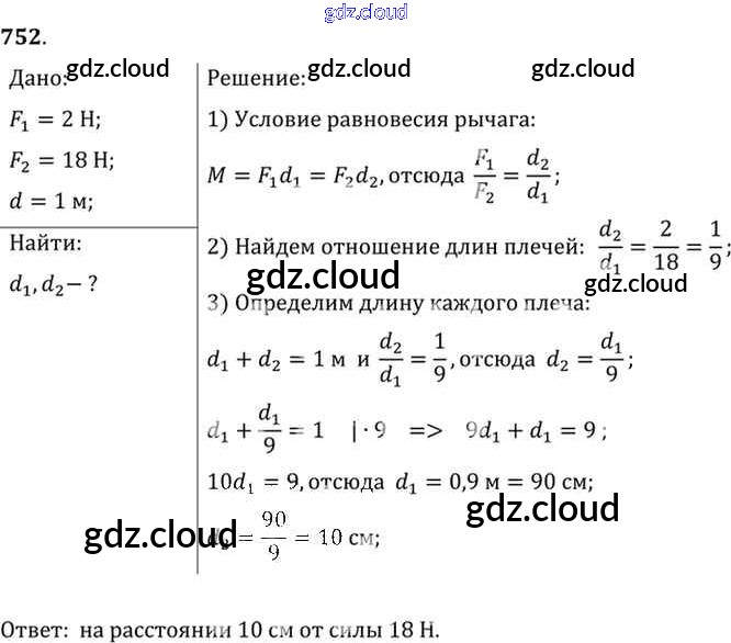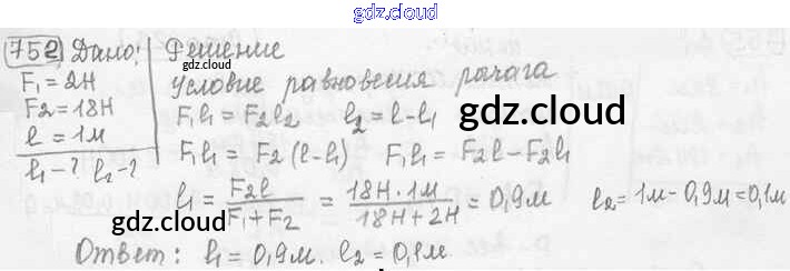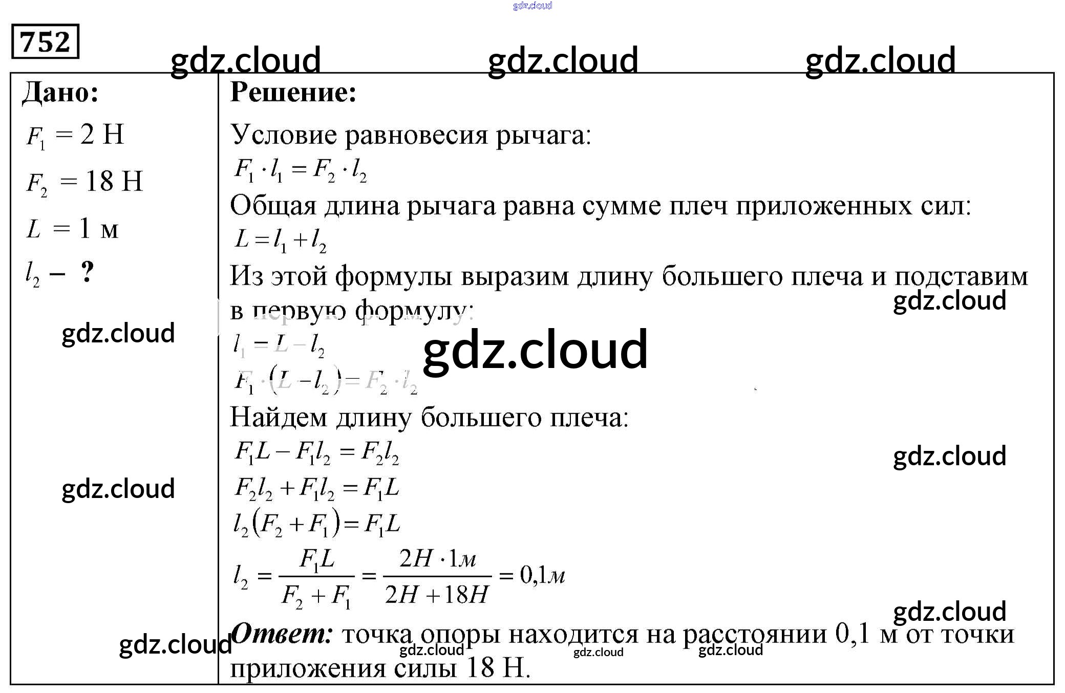 Ответ на задание 752 Сборник задач Физика за 7, 8, 9 (седьмой, восьмой, девятый) класс Лукашик, Иванова 2011