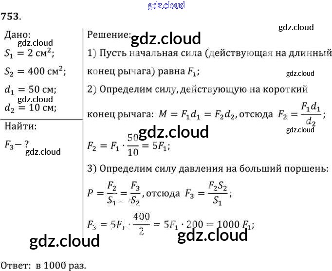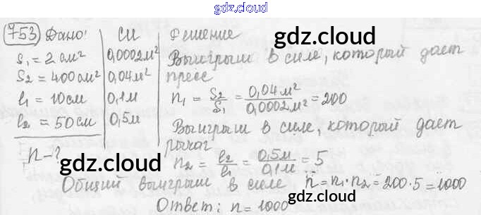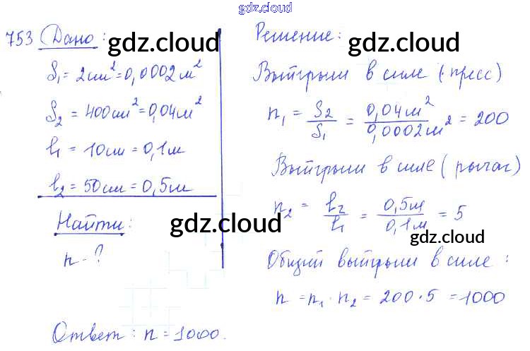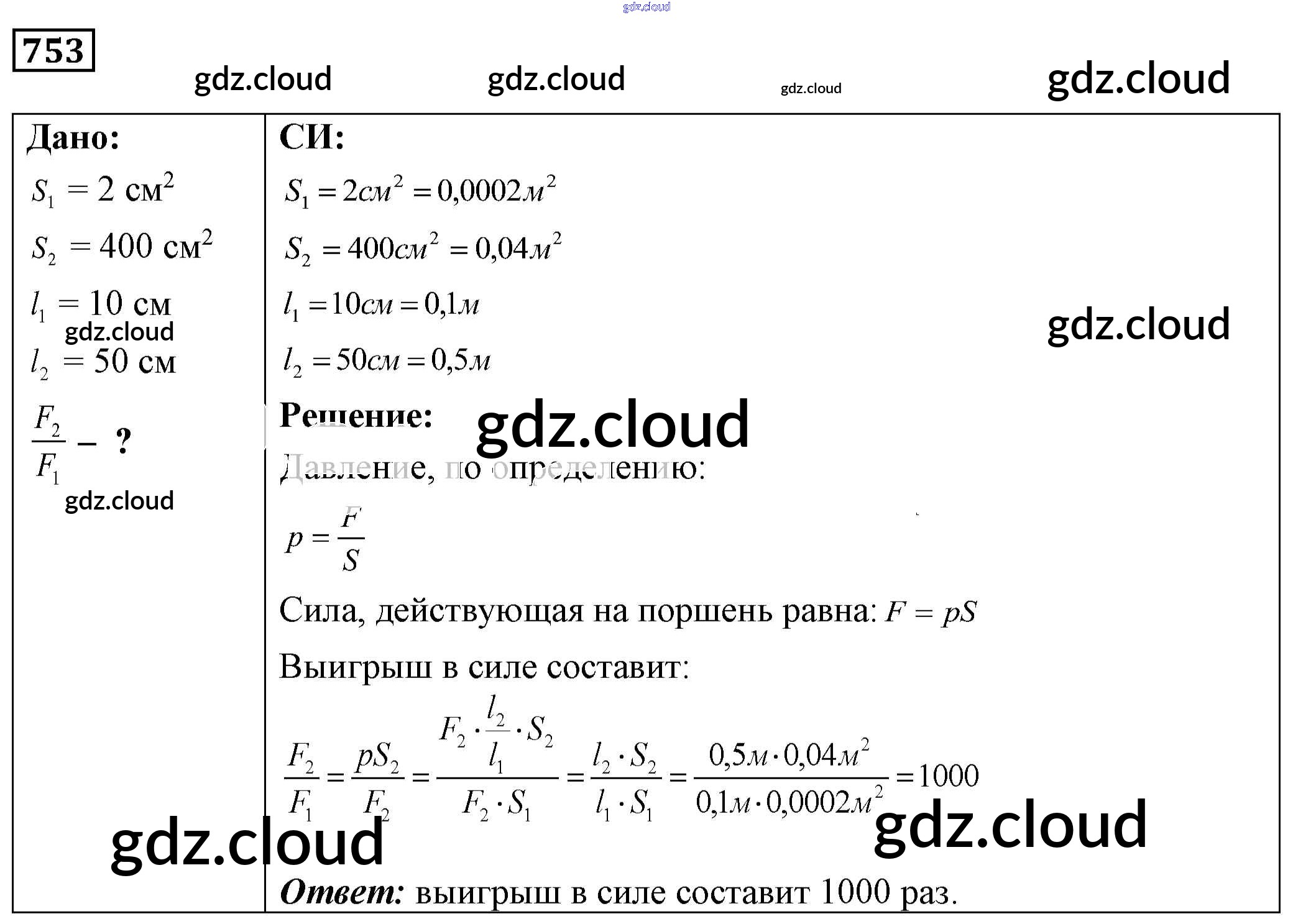 Ответ на задание 753 Сборник задач Физика за 7, 8, 9 (седьмой, восьмой, девятый) класс Лукашик, Иванова 2011