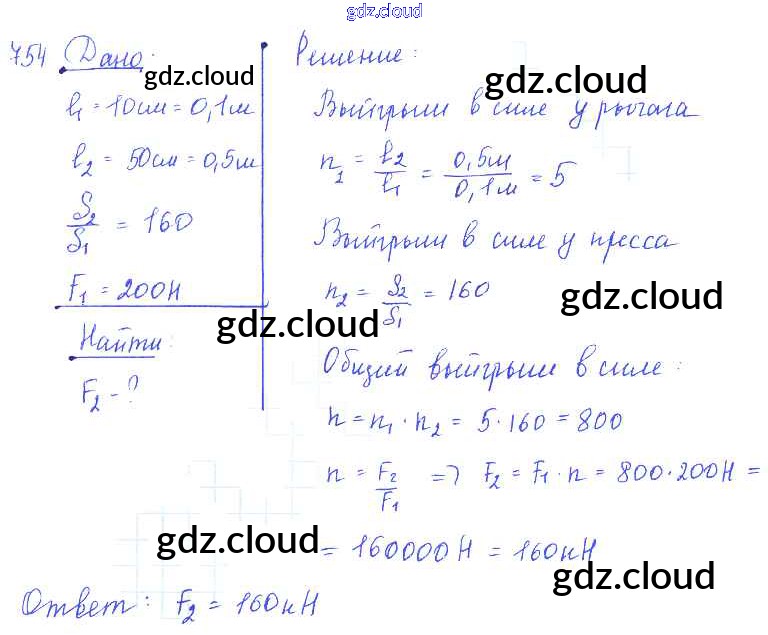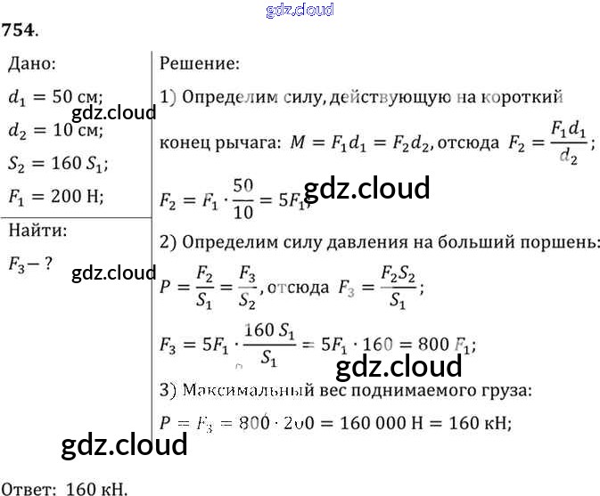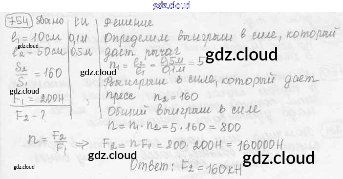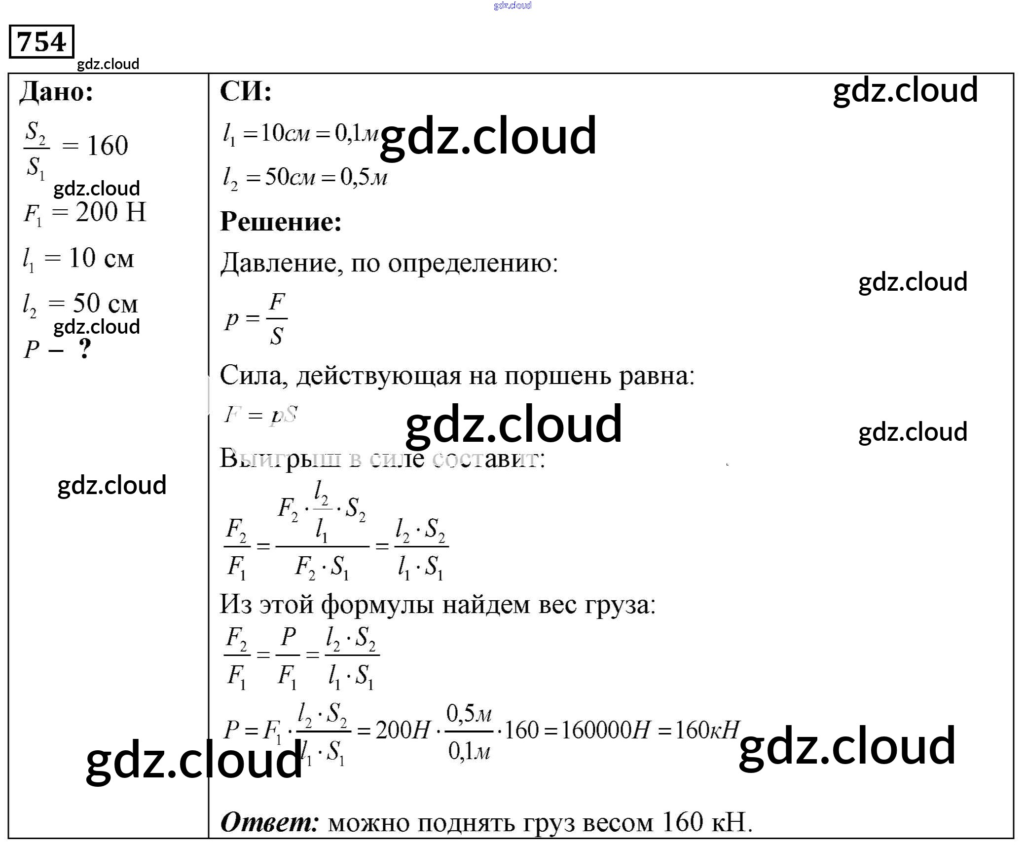 Ответ на задание 754 Сборник задач Физика за 7, 8, 9 (седьмой, восьмой, девятый) класс Лукашик, Иванова 2011
