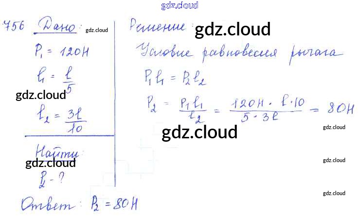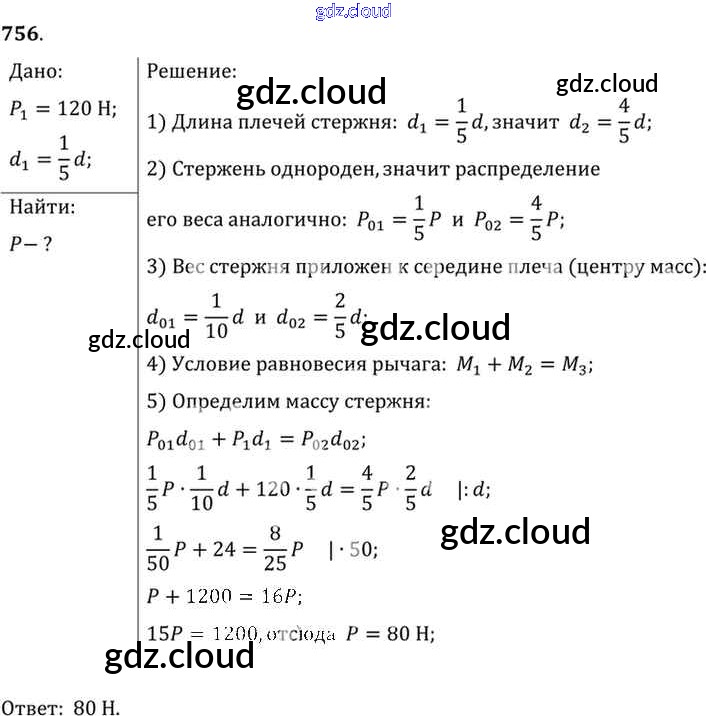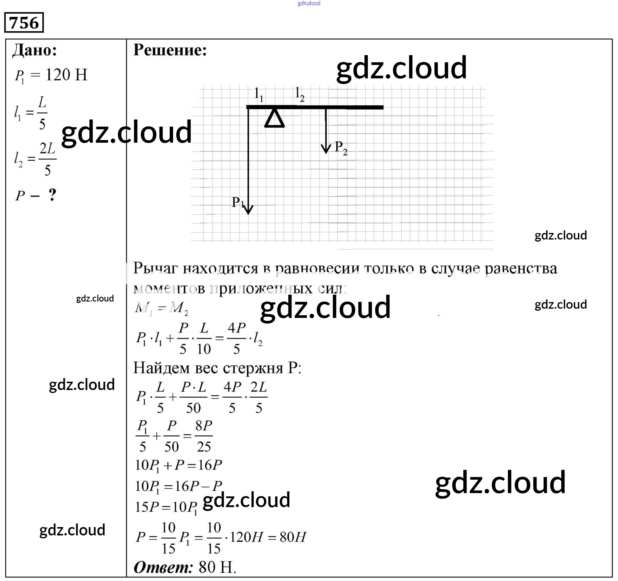 Ответ на задание 756 Сборник задач Физика за 7, 8, 9 (седьмой, восьмой, девятый) класс Лукашик, Иванова 2011