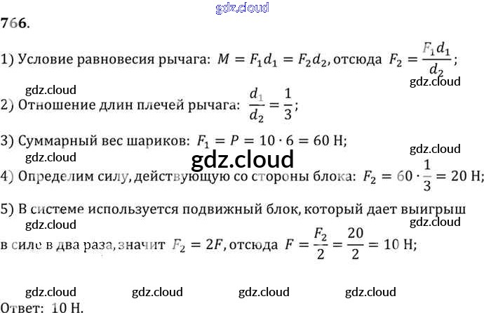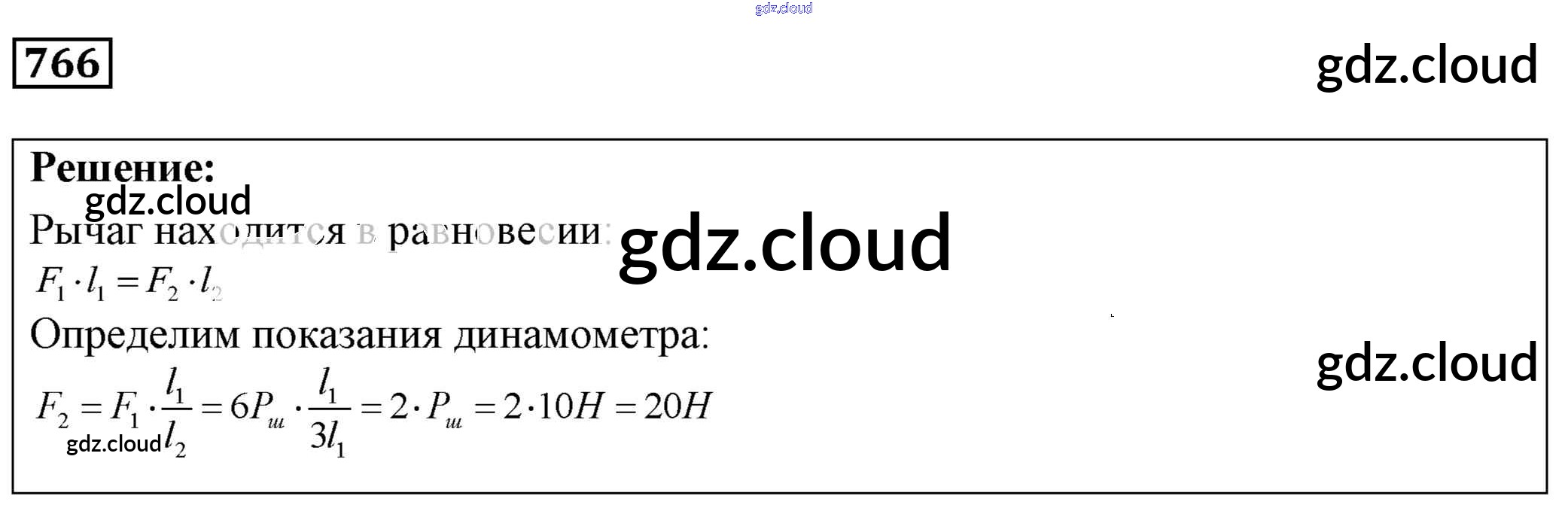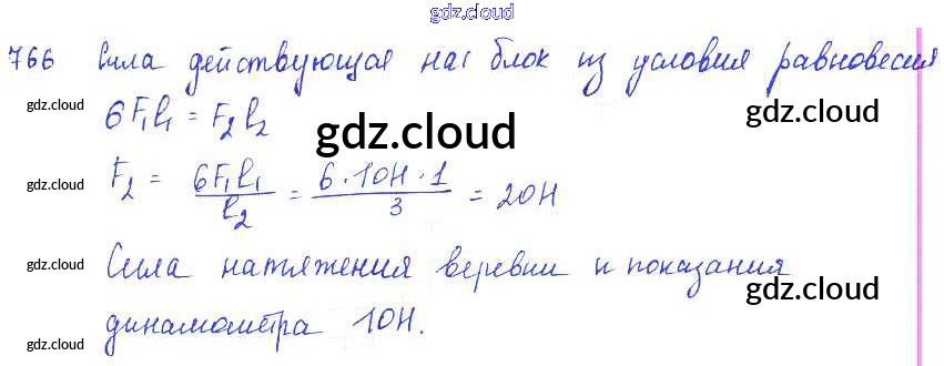 Ответ на задание 766 Сборник задач Физика за 7, 8, 9 (седьмой, восьмой, девятый) класс Лукашик, Иванова 2011