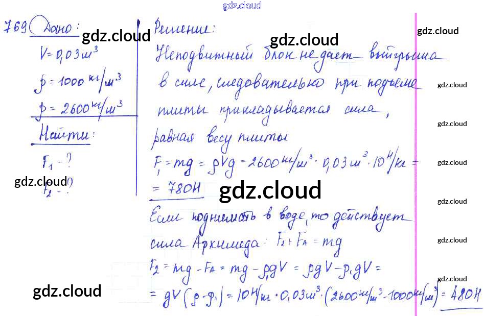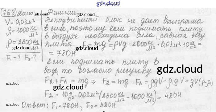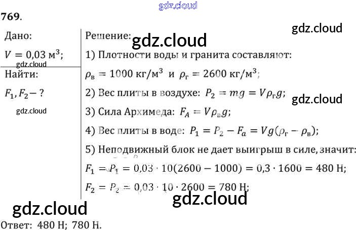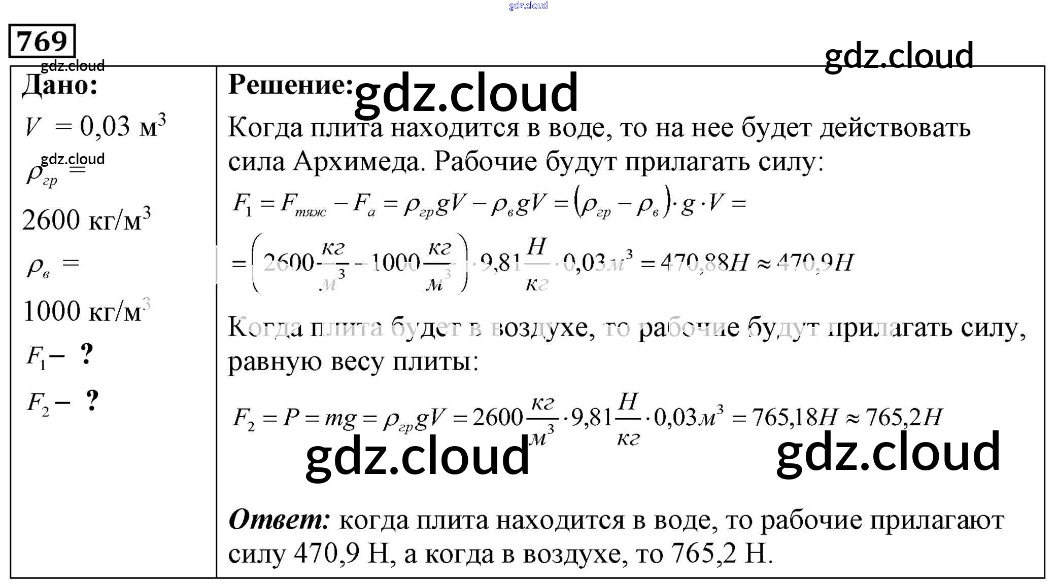 Ответ на задание 769 Сборник задач Физика за 7, 8, 9 (седьмой, восьмой, девятый) класс Лукашик, Иванова 2011
